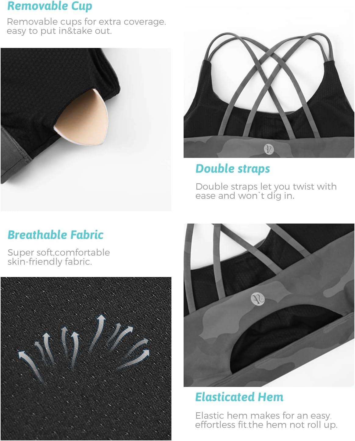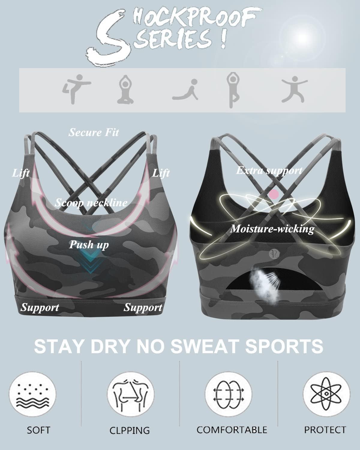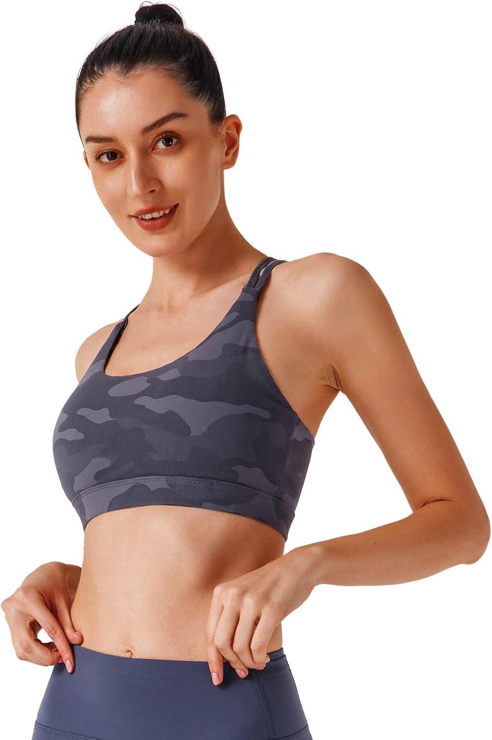 RUNNING GIRL Sports Bras for Women,Padded Sports Bra Tank Top Sexy Crisscross Back High Impact Longline Workout Yoga Bra(Camouflage Black)