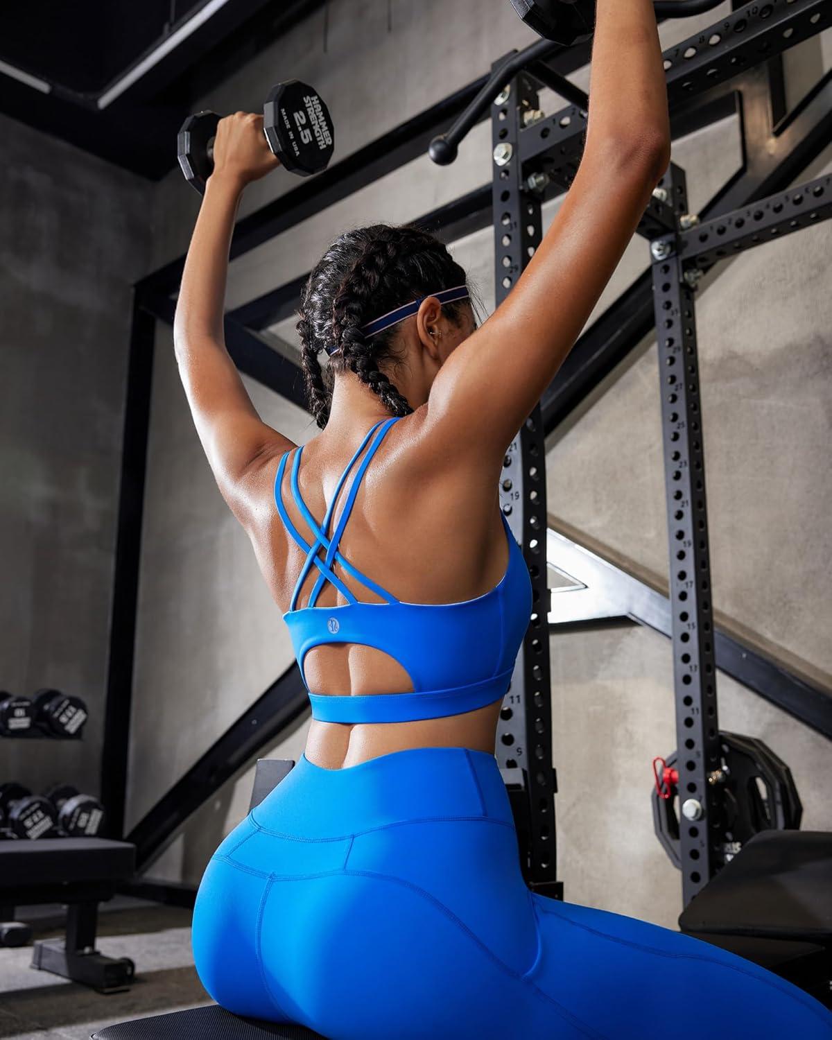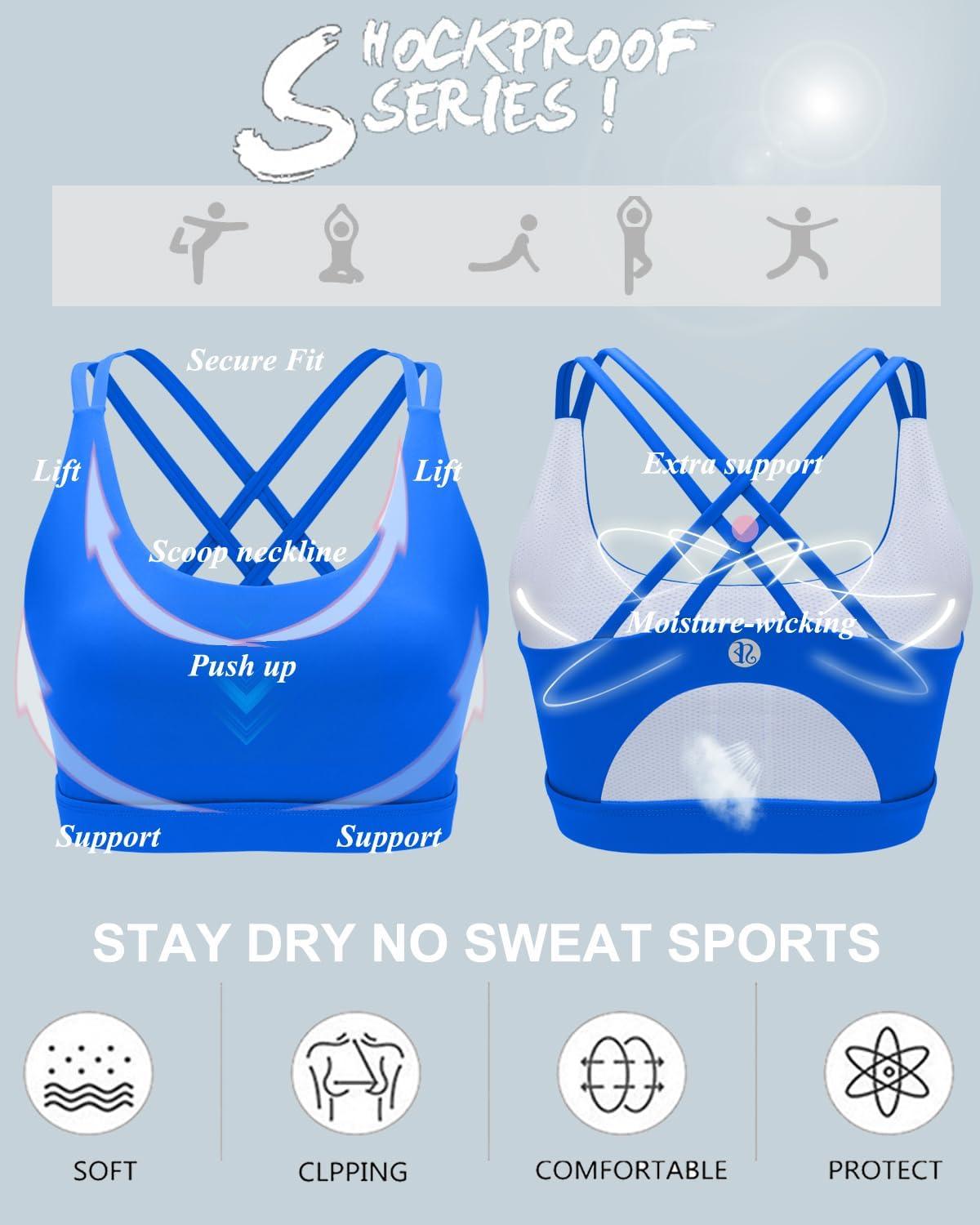 RUNNING GIRL High Impact Sports Bras for Women – Scoop Neck Strappy Sports Bra High Support Moulded Cup Workout Bra(Bright Blue)