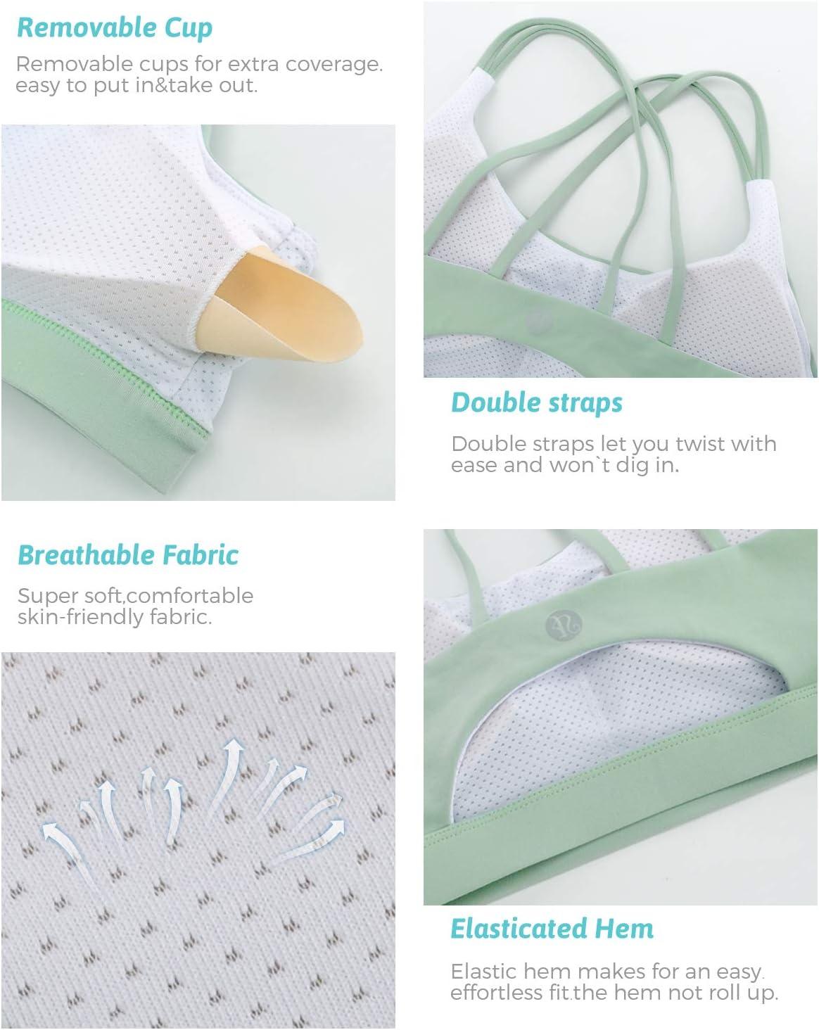 RUNNING GIRL Y-Back Sports Bras for Women, Medium Impact Wirefree Padded Bra Workout Crop Top Longline Sports Bra Push up(Pale Green)