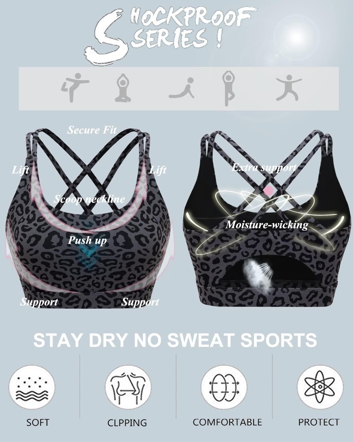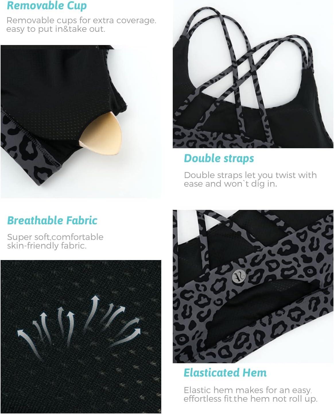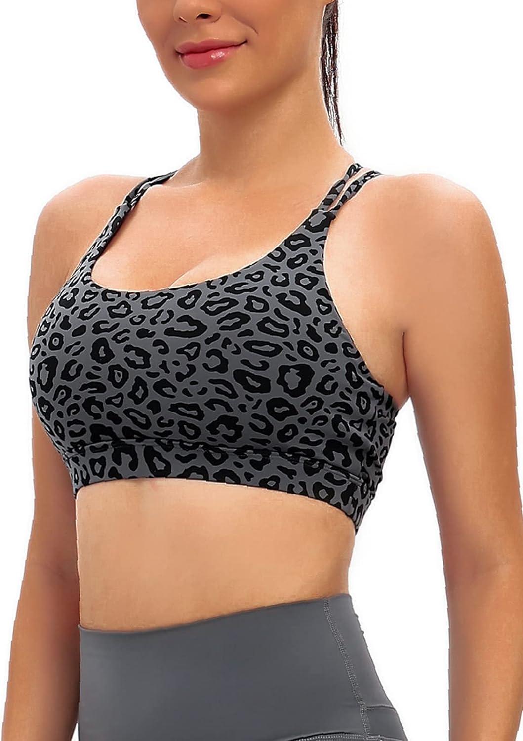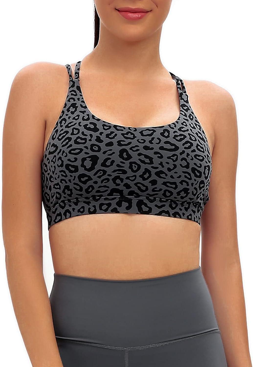 RUNNING GIRL Sports Bras for Women,Padded Sports Bra Tank Top Sexy Crisscross Back High Impact Longline Workout Yoga Bra(Leopard Print)
