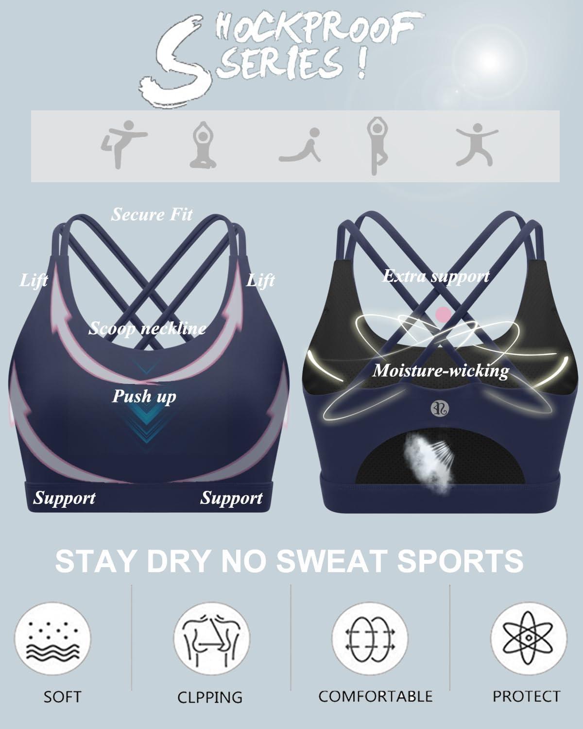RUNNING GIRL High Impact Sports Bras for Women – Scoop Neck Strappy Sports Bra High Support Moulded Cup Workout Bra(Navy Blue)