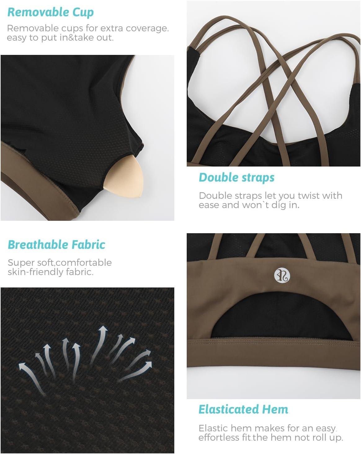 RUNNING GIRL Sports Bras for Women,Padded Sports Bra Tank Top Sexy Crisscross Back High Impact Longline Workout Yoga Bra(Oak Brown)
