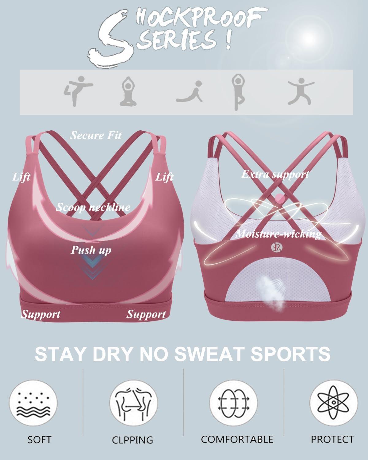 RUNNING GIRL High Impact Sports Bras for Women – Scoop Neck Strappy Sports Bra High Support Moulded Cup Workout Bra(B-pink)