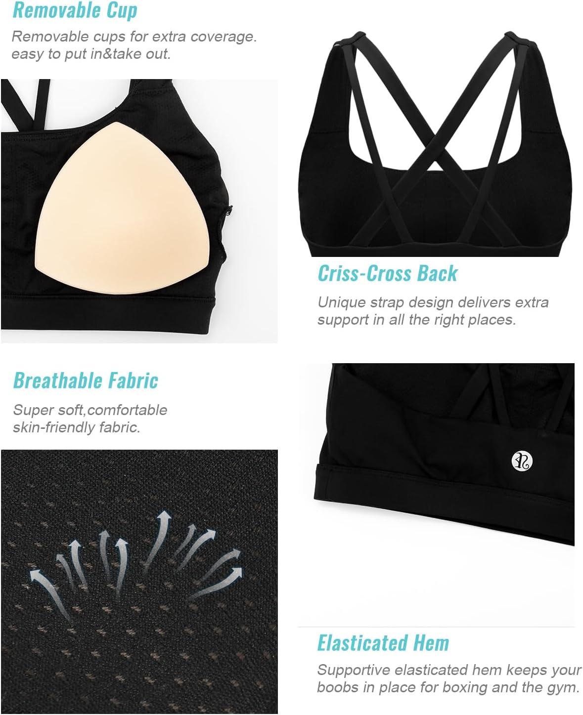RUNNING GIRL High Impact Sports Bras for Women – Scoop Neck Strappy Sports Bra High Support Moulded Cup Workout Bra(B-black)