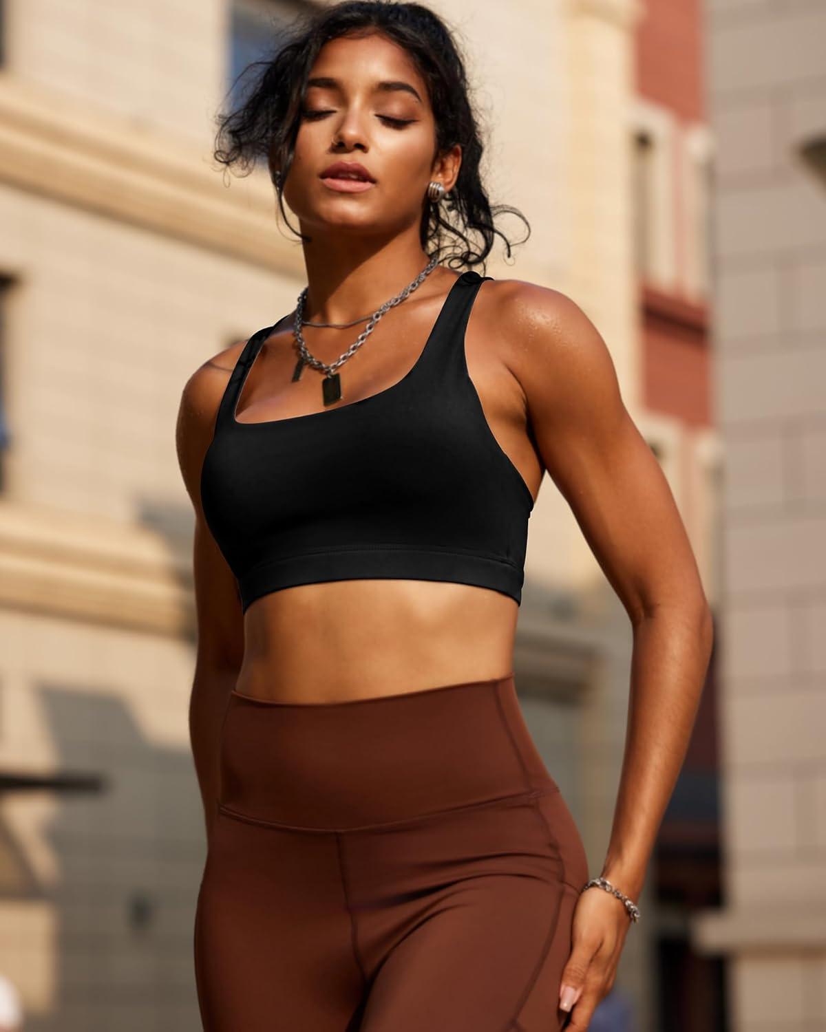 RUNNING GIRL High Impact Sports Bras for Women – Scoop Neck Strappy Sports Bra High Support Moulded Cup Workout Bra(A-black)