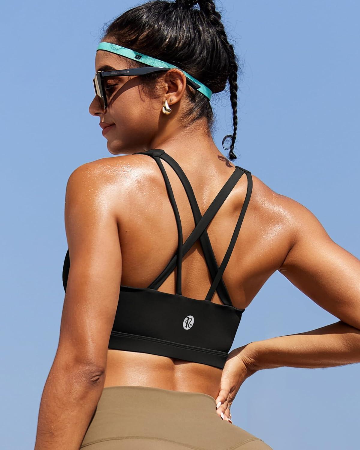 RUNNING GIRL Sports Bras for Women,Padded Sports Bra Tank Top Sexy Crisscross Back High Impact Longline Workout Yoga Bra(1-black)