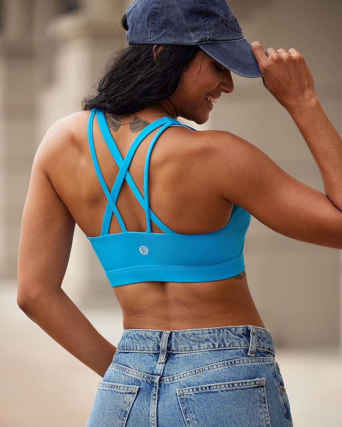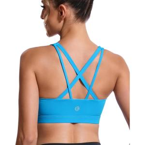 RUNNING GIRL Sports Bras for Women,Padded Sports Bra Tank Top Sexy Crisscross Back High Impact Longline Workout Yoga Bra(Cerulean Blue)