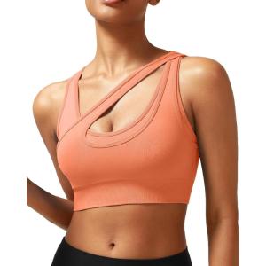 RUNNING GIRL Sports Bras for Women High Impact Seamless Ribbed Longline High Neck Workout Crop Tank Tops Padded(B-light Orange)