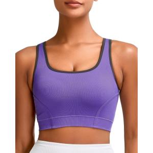 RUNNING GIRL Y-Back Sports Bras for Women, Medium Impact Wirefree Padded Bra Workout Crop Top Longline Sports Bra Push up(F-purple)