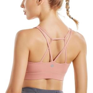 RUNNING GIRL Sports Bras for Women,Padded Sports Bra Tank Top Sexy Crisscross Back High Impact Longline Workout Yoga Bra(Pink)