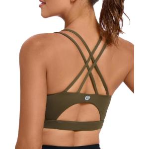 RUNNING GIRL Y-Back Sports Bras for Women, Medium Impact Wirefree Padded Bra Workout Crop Top Longline Sports Bra Push up(Golden Olive)