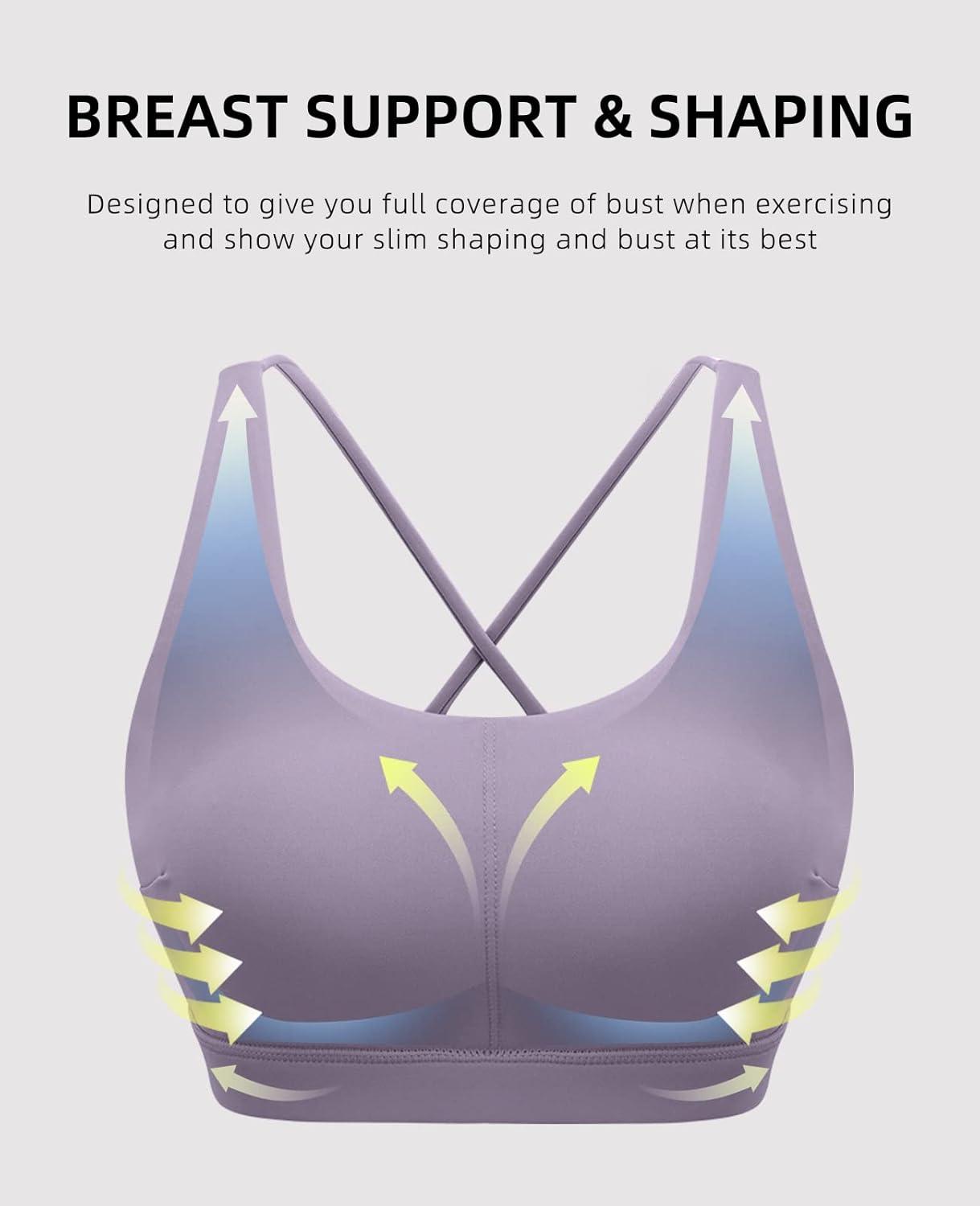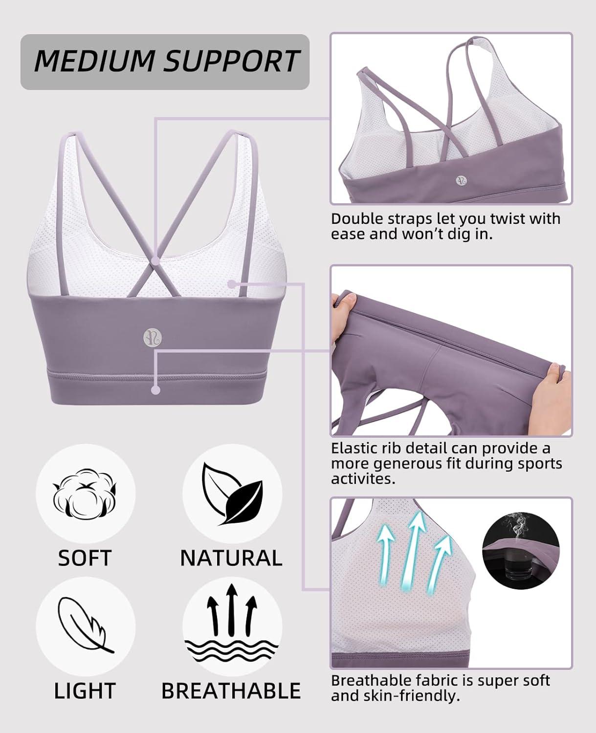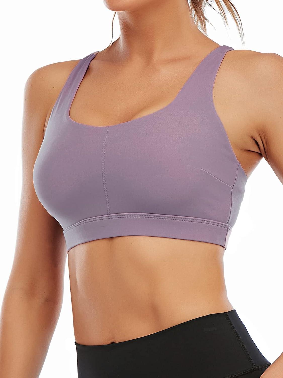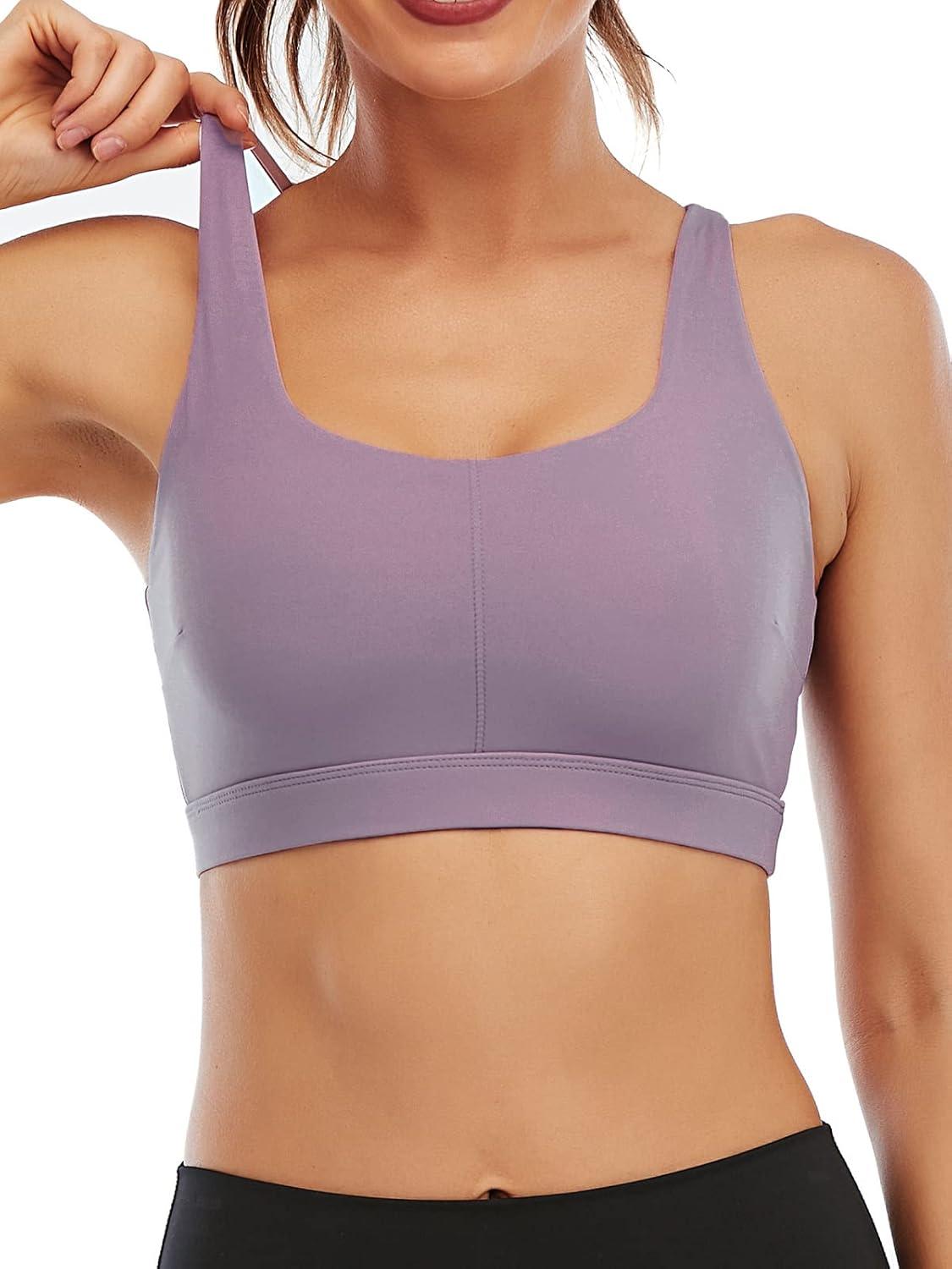 RUNNING GIRL Sports Bra for Women, Sexy Crisscross Back Medium Support Padded Strappy Yoga Bra with Removable Cups(B-purple)
