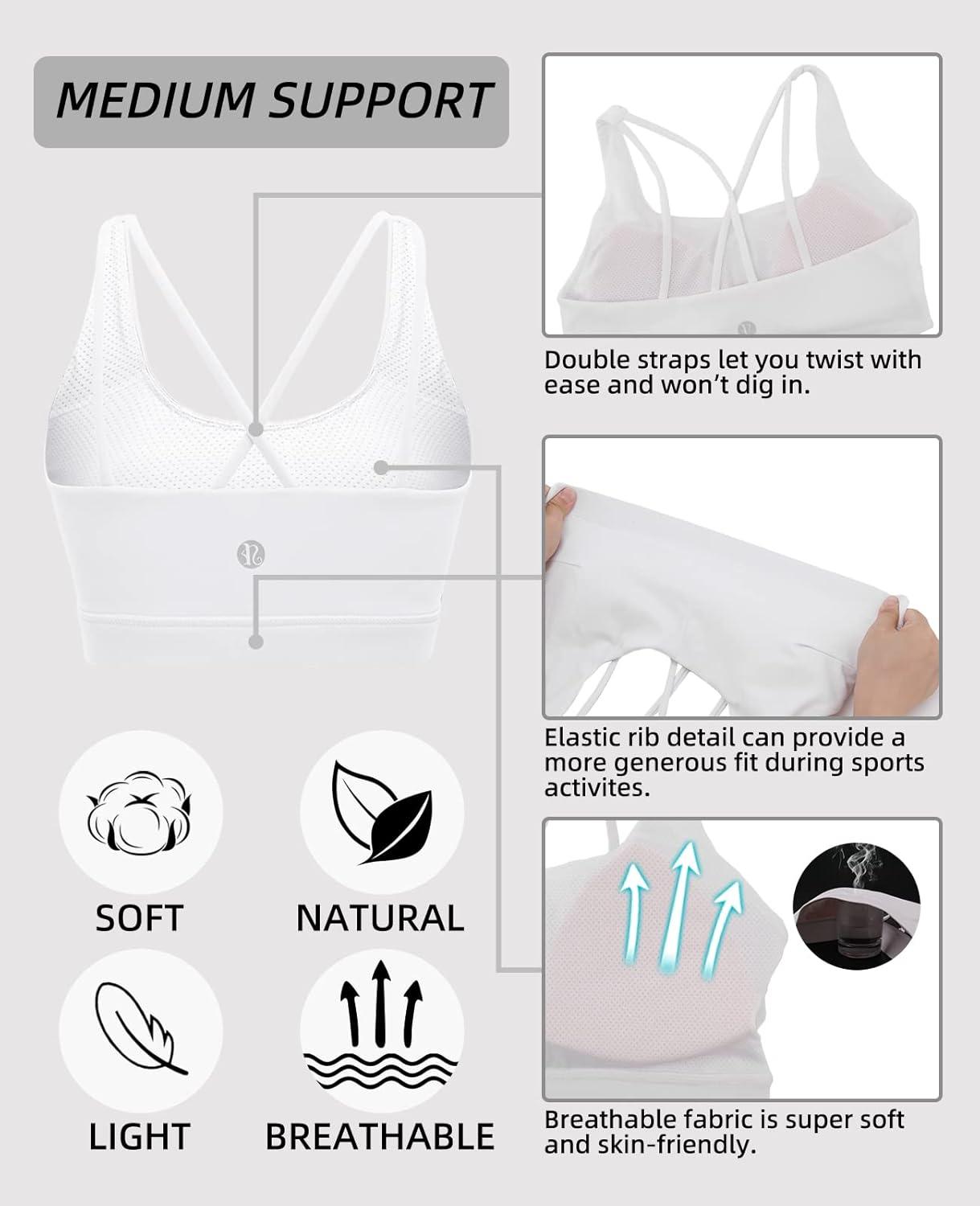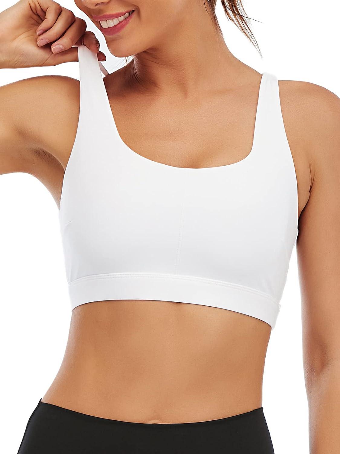 RUNNING GIRL Sports Bra for Women, Sexy Crisscross Back Medium Support Padded Strappy Yoga Bra with Removable Cups(B-white)