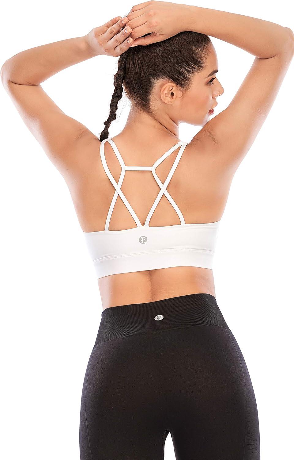 RUNNING GIRL Sports Bra for Women,Y Back Molded Cup Strappy Running Sports Bra with Sewn in Pads(White)