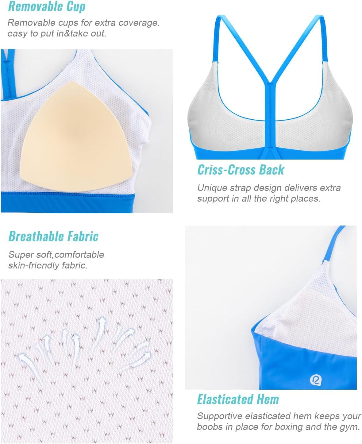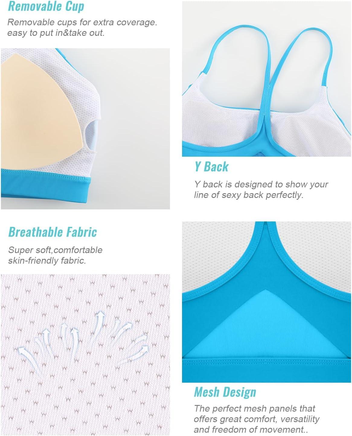 RUNNING GIRL Y-Back Sports Bras for Women, Medium Impact Wirefree Padded Bra Workout Crop Top Longline Sports Bra Push up(E-bright Blue)