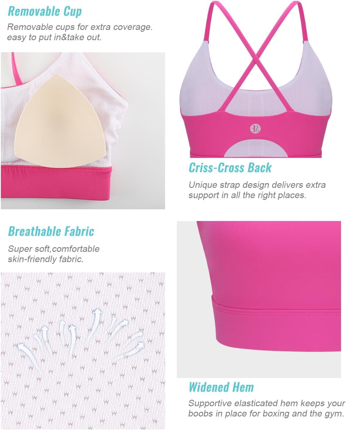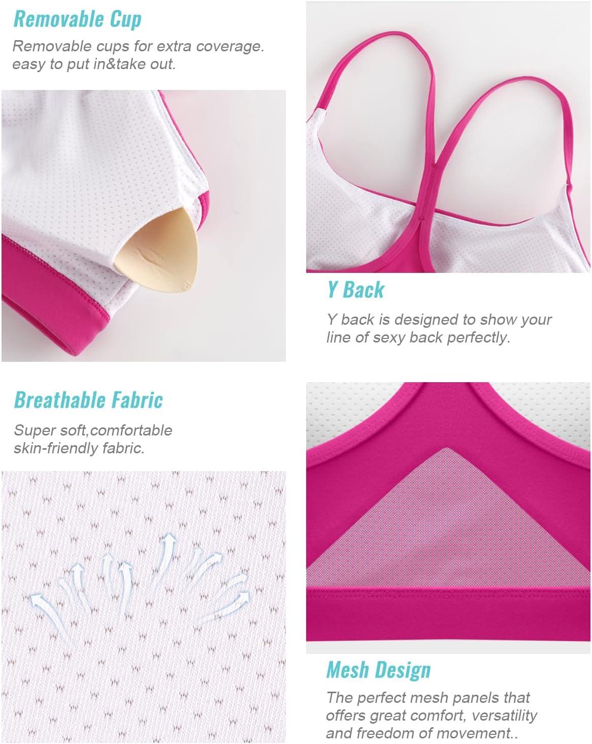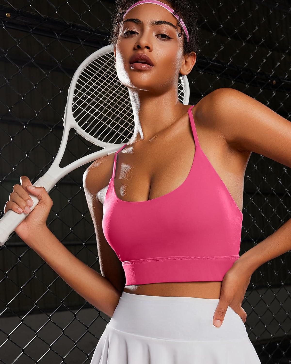 RUNNING GIRL Y-Back Sports Bras for Women, Medium Impact Wirefree Padded Bra Workout Crop Top Longline Sports Bra Push up(F-hot Pink)
