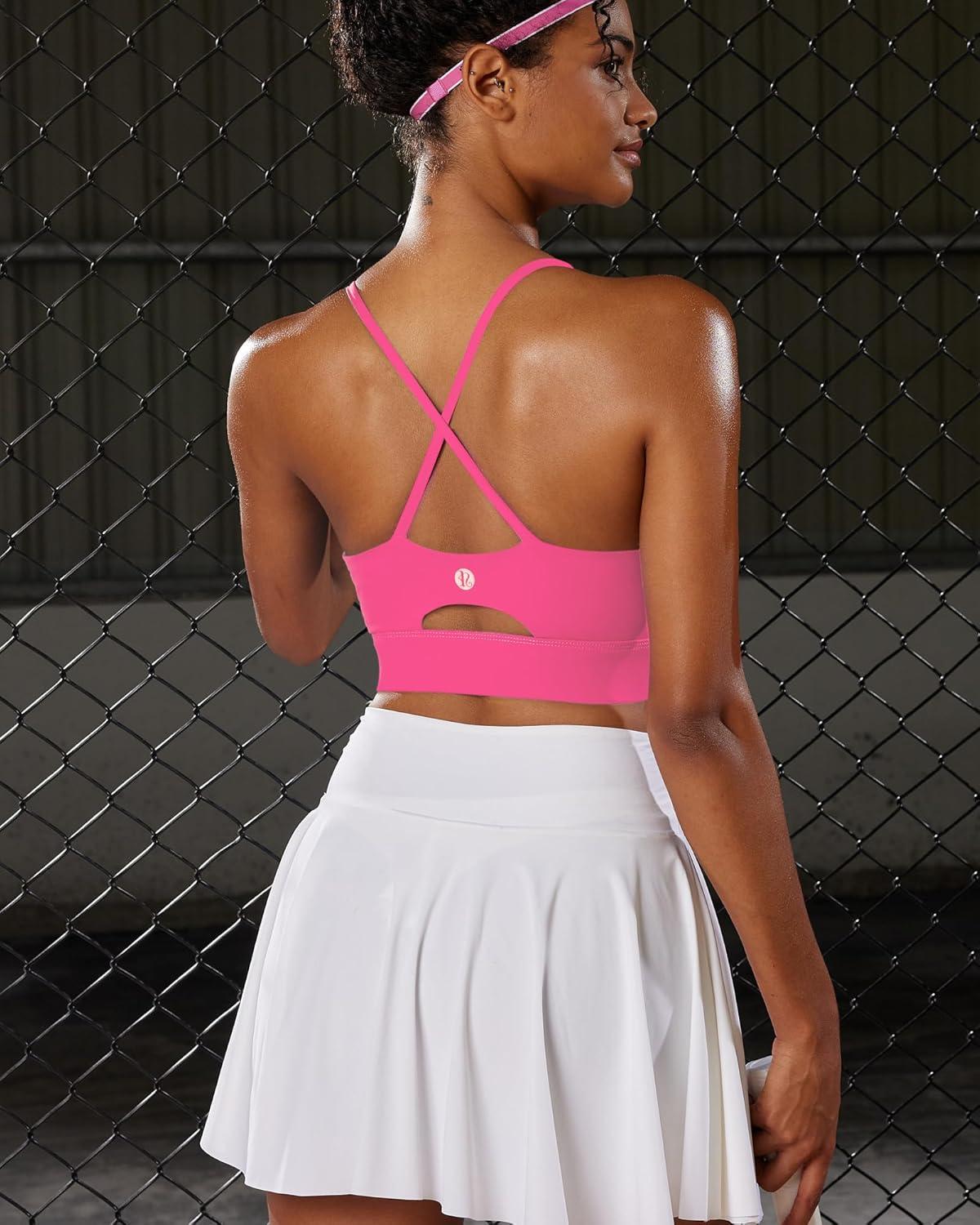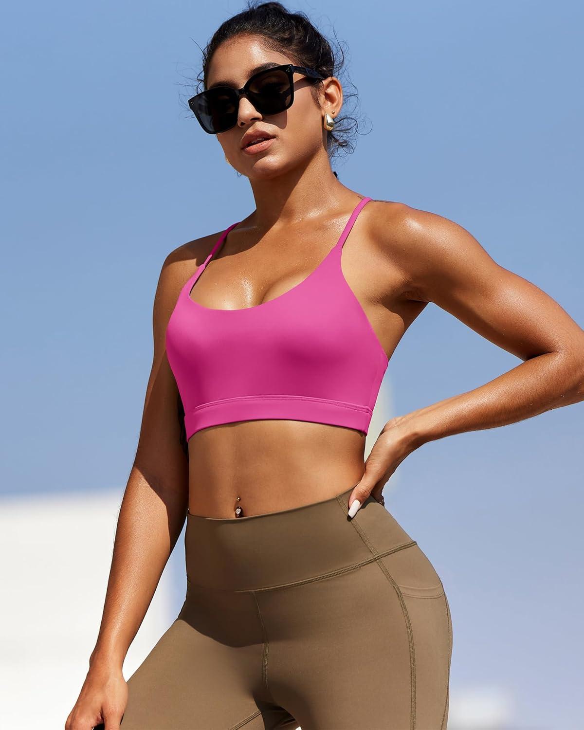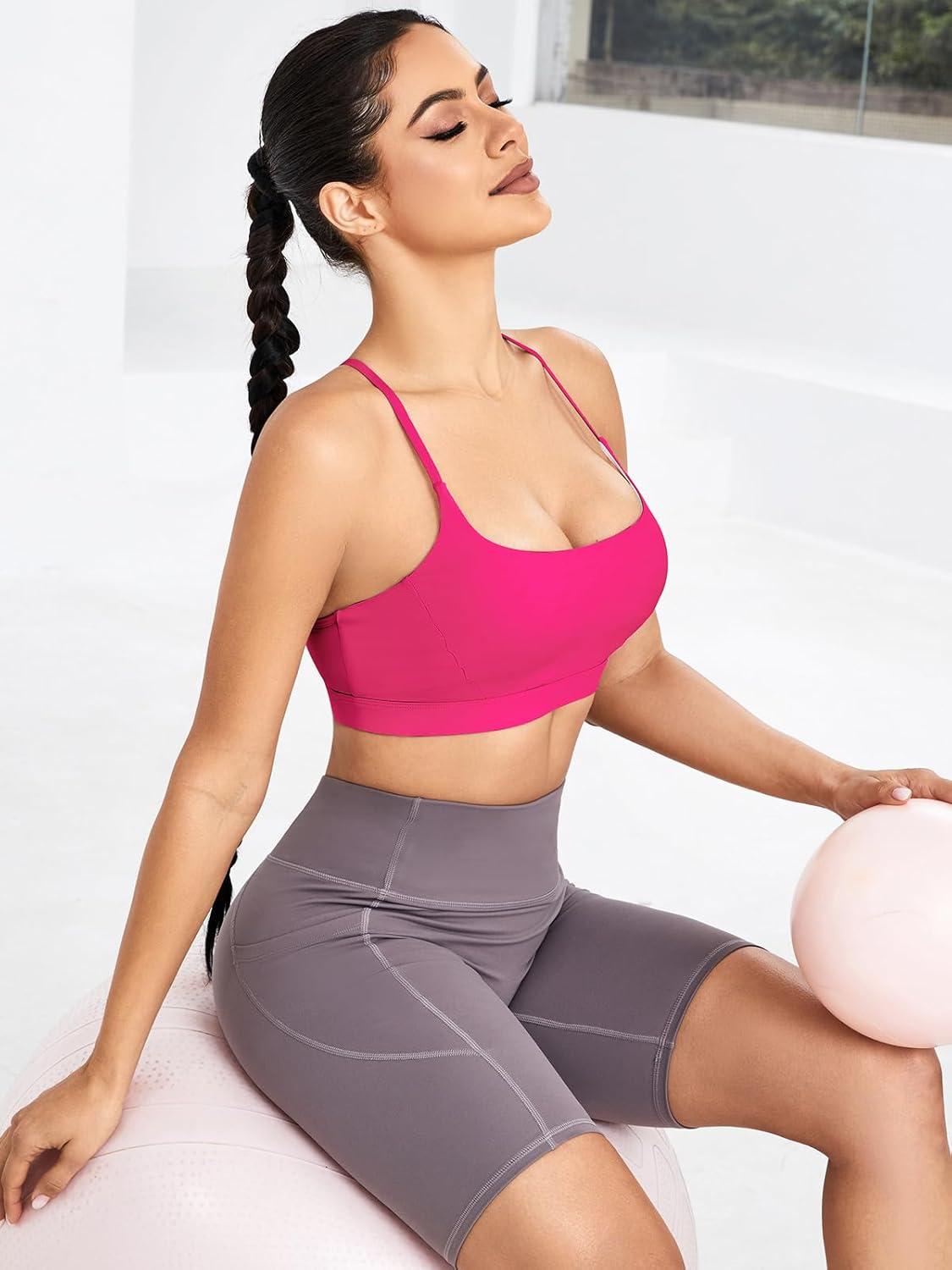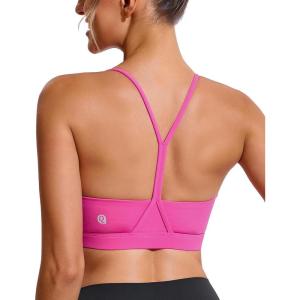 RUNNING GIRL Y-Back Sports Bras for Women, Medium Impact Wirefree Padded Bra Workout Crop Top Longline Sports Bra Push up(F-hot Pink)