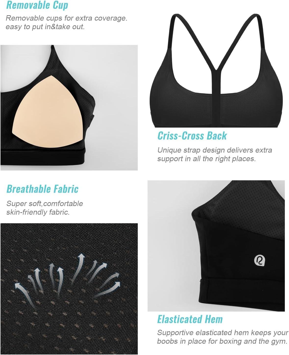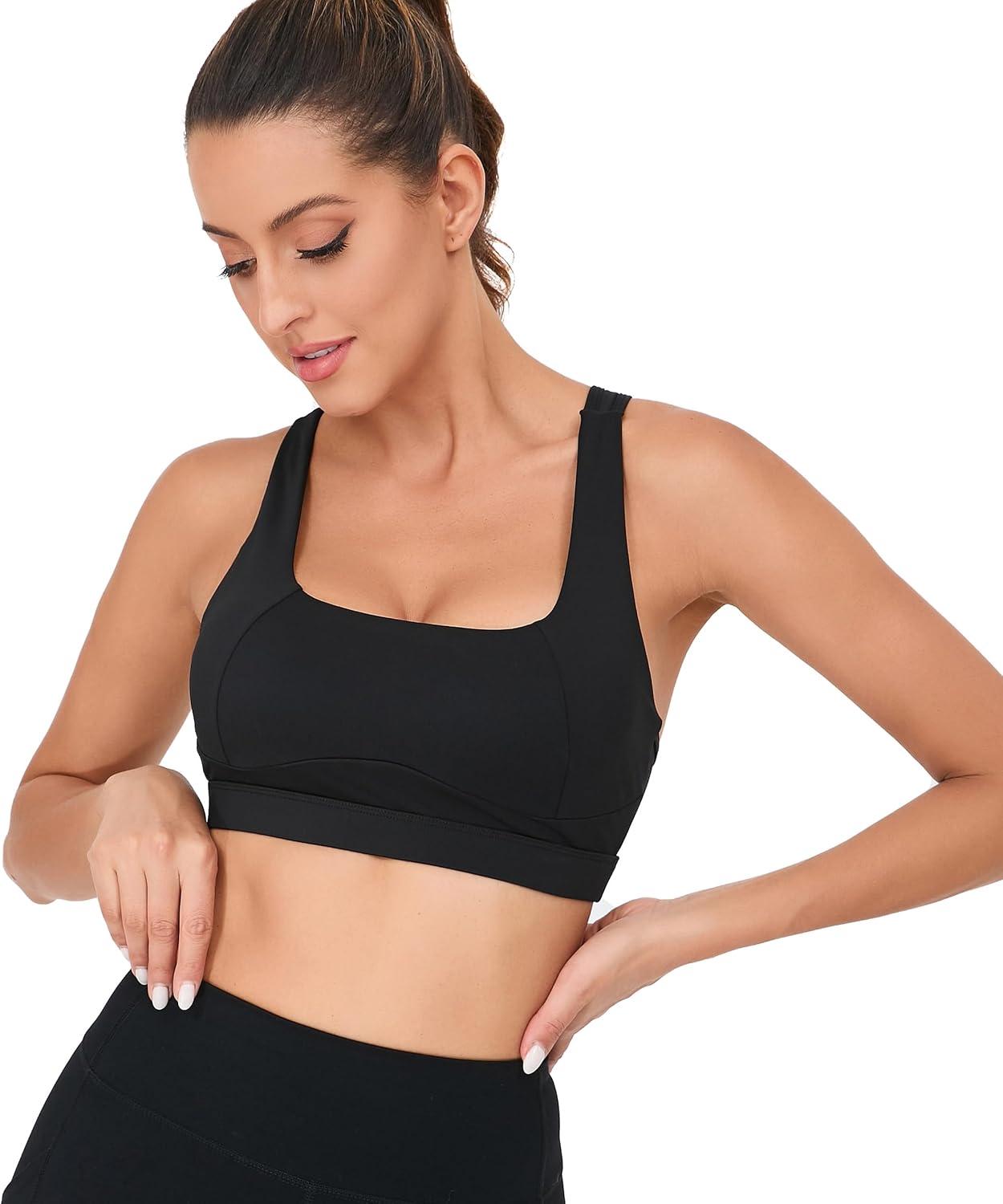 RUNNING GIRL Y-Back Sports Bras for Women, Medium Impact Wirefree Padded Bra Workout Crop Top Longline Sports Bra Push up(E-black)