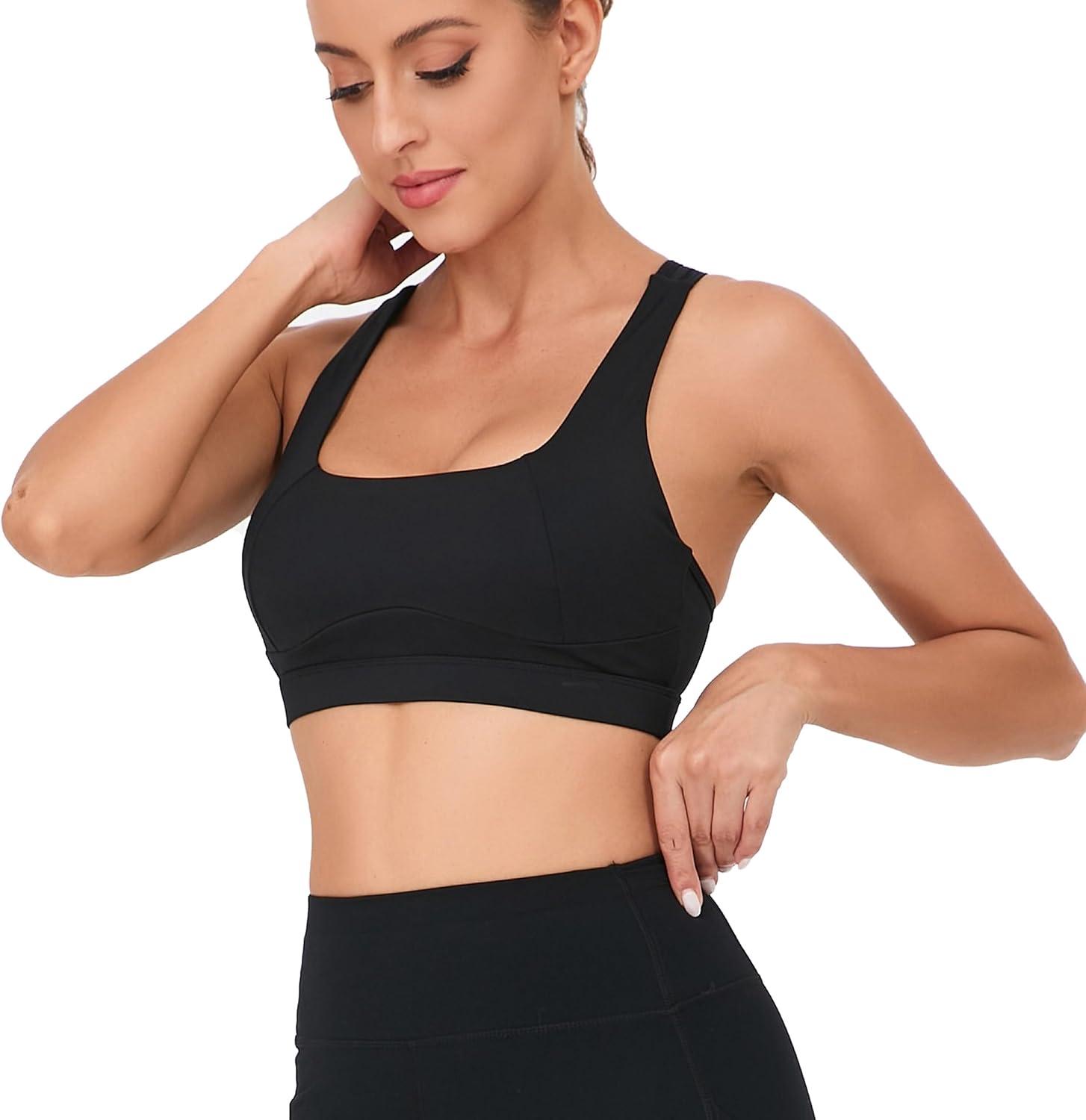 RUNNING GIRL Sports Bras for Women, Molded Cup High Impact Sports Bra Workout Bras for Women High Support Racerback(D-black)