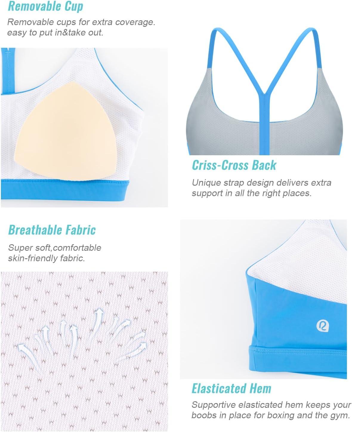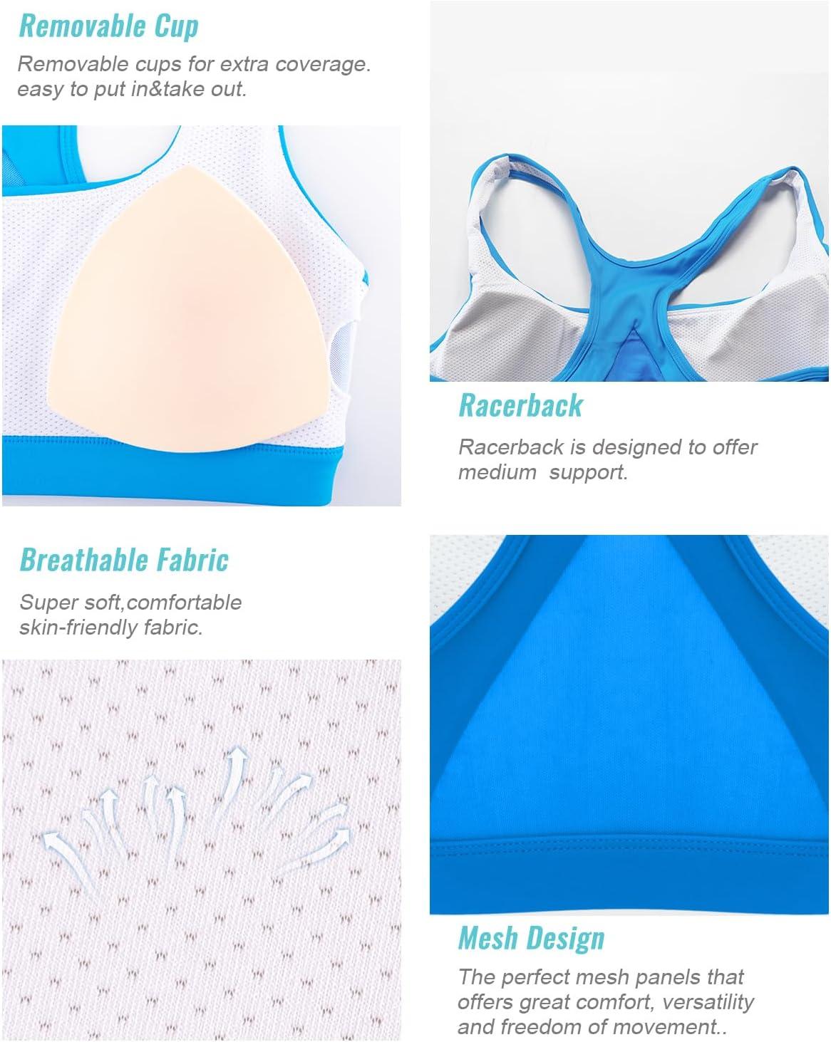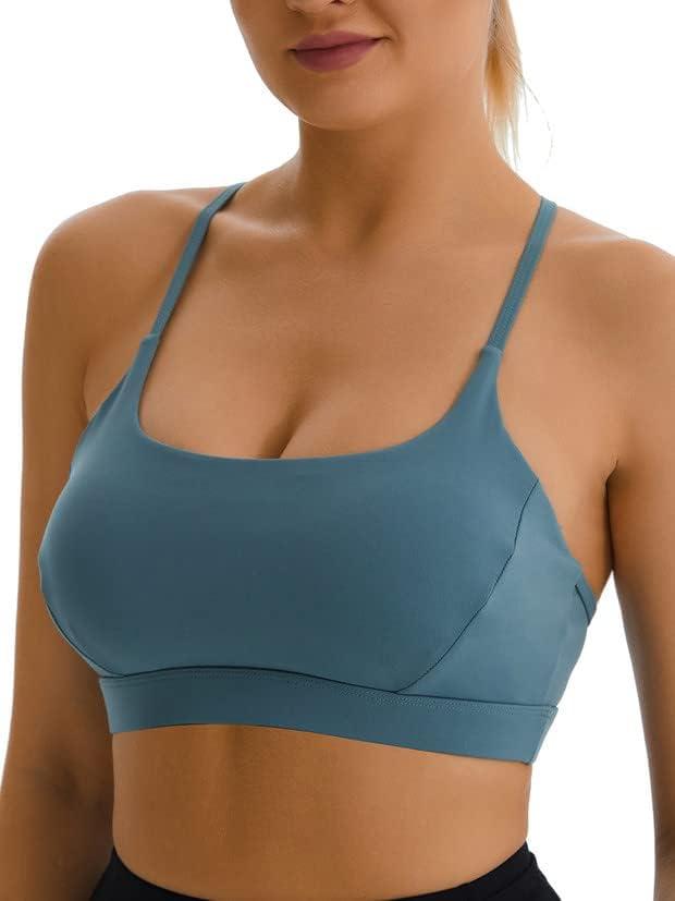 RUNNING GIRL Y-Back Sports Bras for Women, Medium Impact Wirefree Padded Bra Workout Crop Top Longline Sports Bra Push up(E-cerulean Blue)