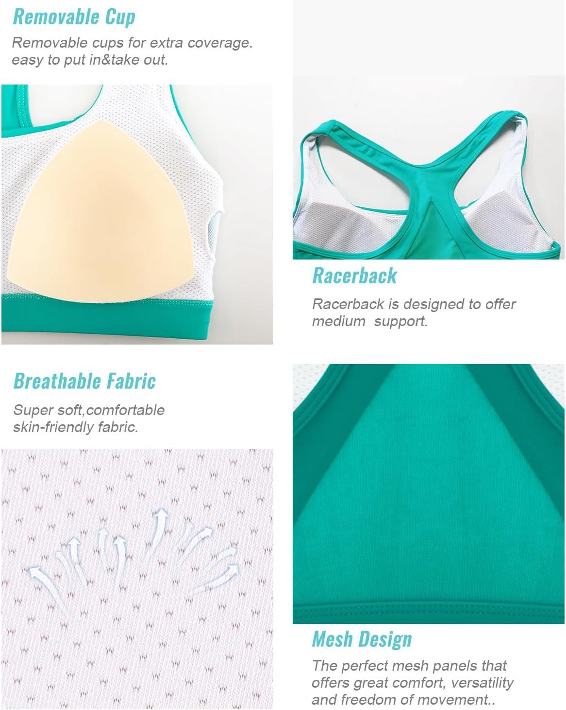 RUNNING GIRL Y-Back Sports Bras for Women, Medium Impact Wirefree Padded Bra Workout Crop Top Longline Sports Bra Push up(D-green)