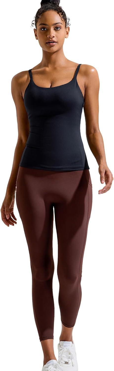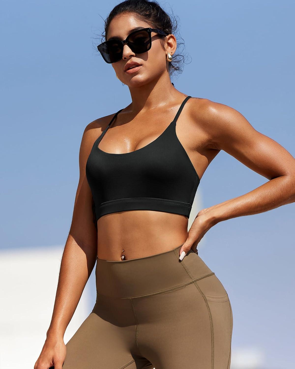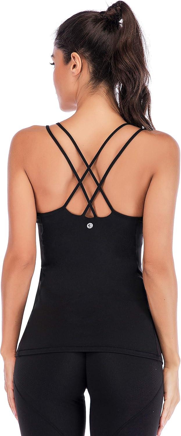 RUNNING GIRL Yoga Tank Tops for Women Built in Shelf Bra B/C Cups Strappy Back Activewear Workout Compression Tops(C-black)