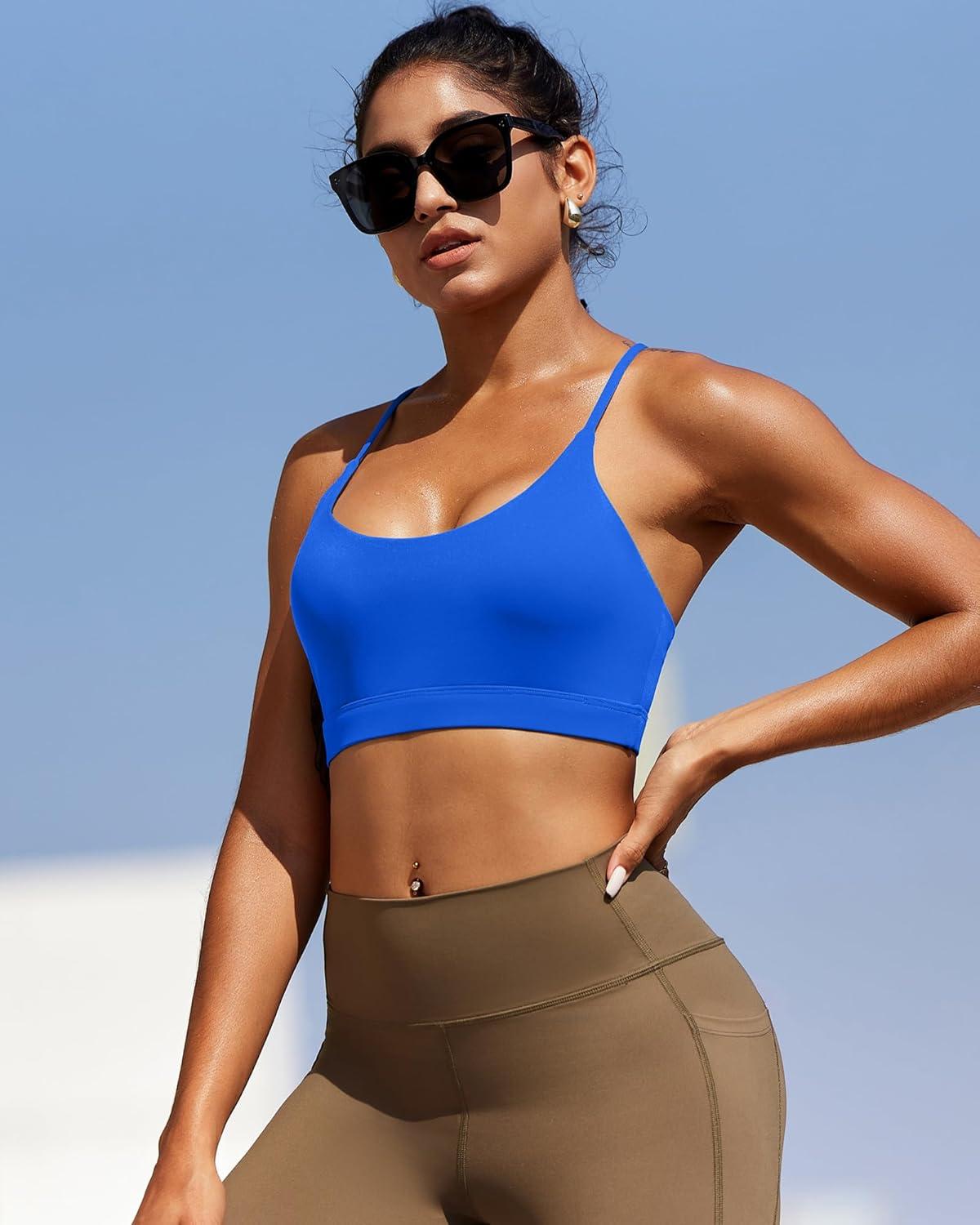 RUNNING GIRL Y-Back Sports Bras for Women, Medium Impact Wirefree Padded Bra Workout Crop Top Longline Sports Bra Push up(Bright Blue)