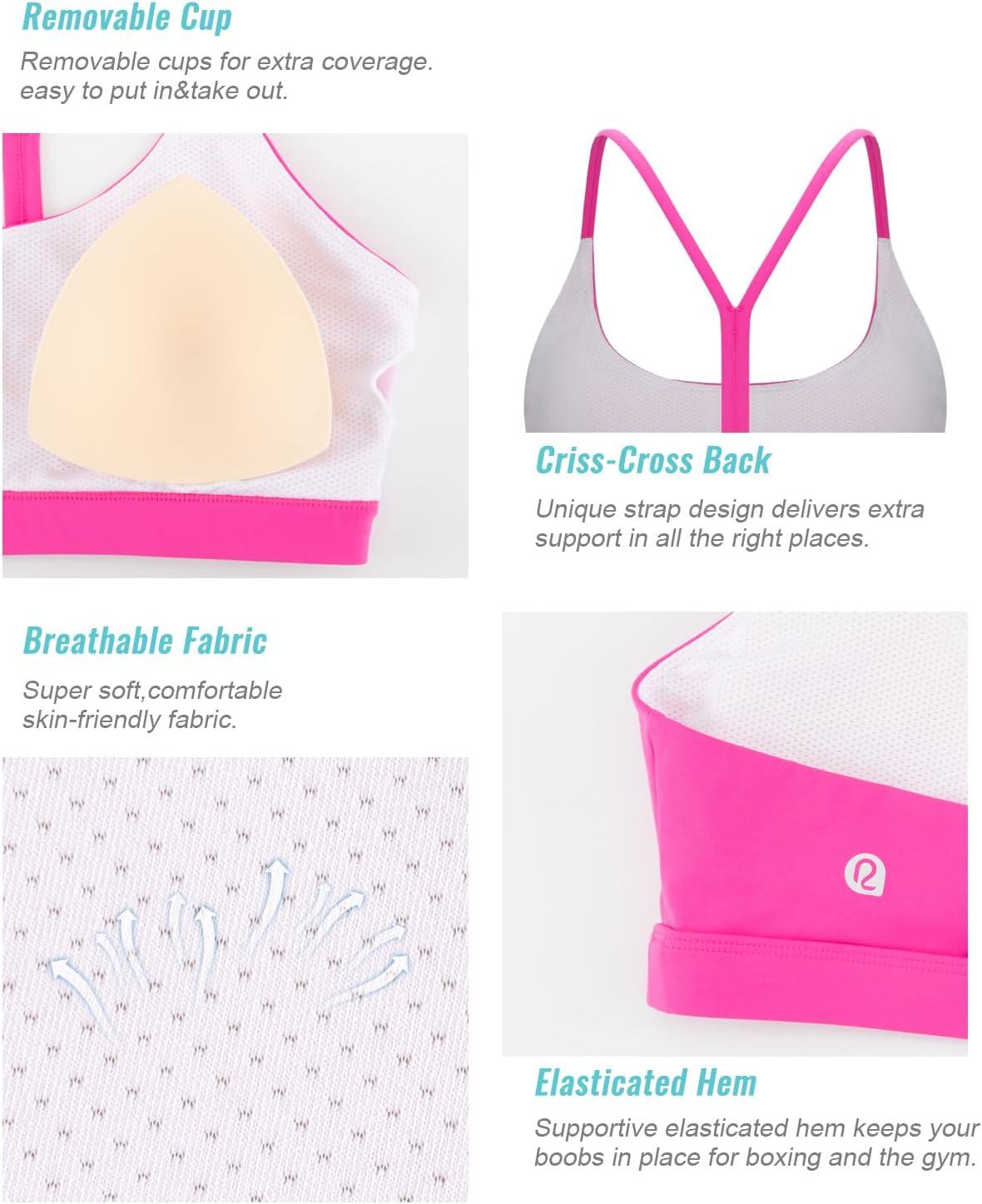 RUNNING GIRL Y-Back Sports Bras for Women, Medium Impact Wirefree Padded Bra Workout Crop Top Longline Sports Bra Push up(D-pink)