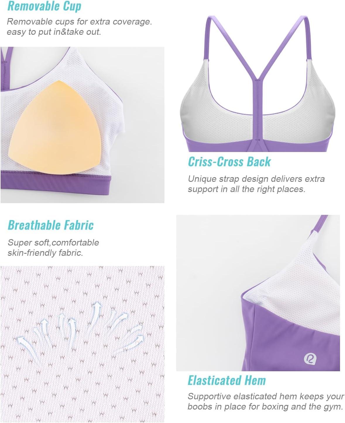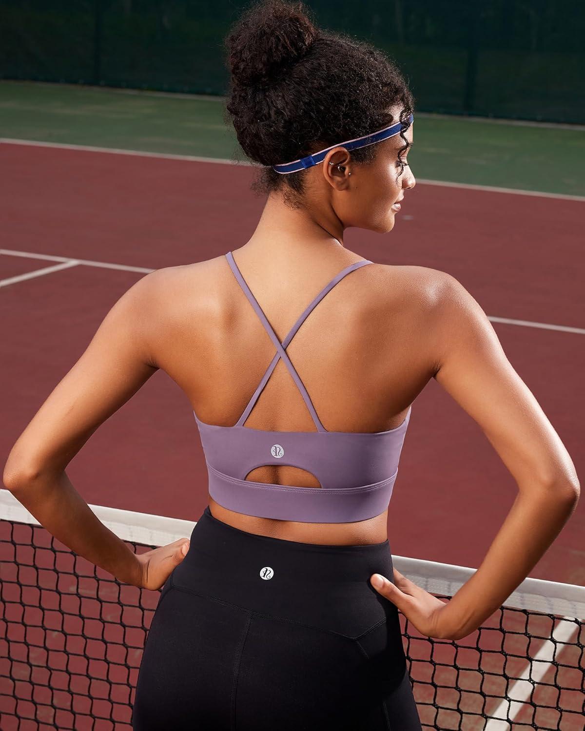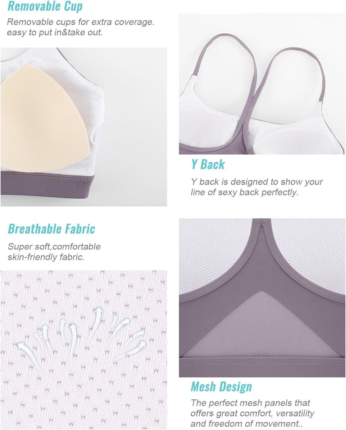 RUNNING GIRL Y-Back Sports Bras for Women, Medium Impact Wirefree Padded Bra Workout Crop Top Longline Sports Bra Push up(E-purple)