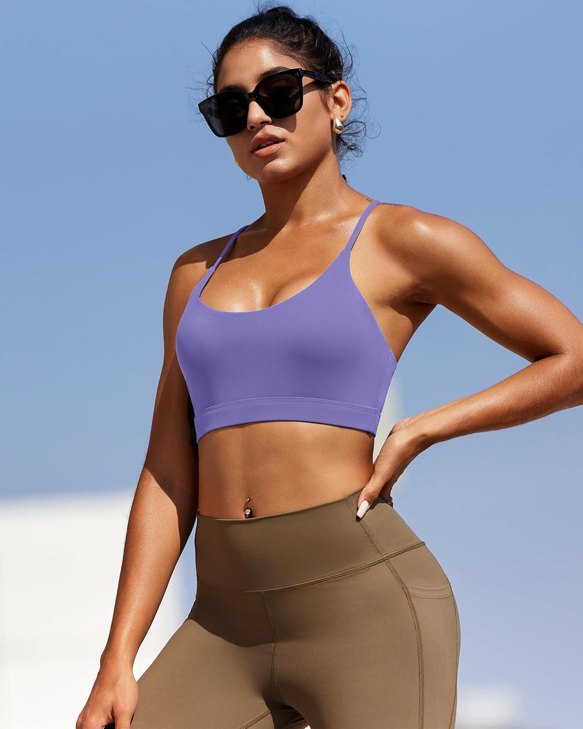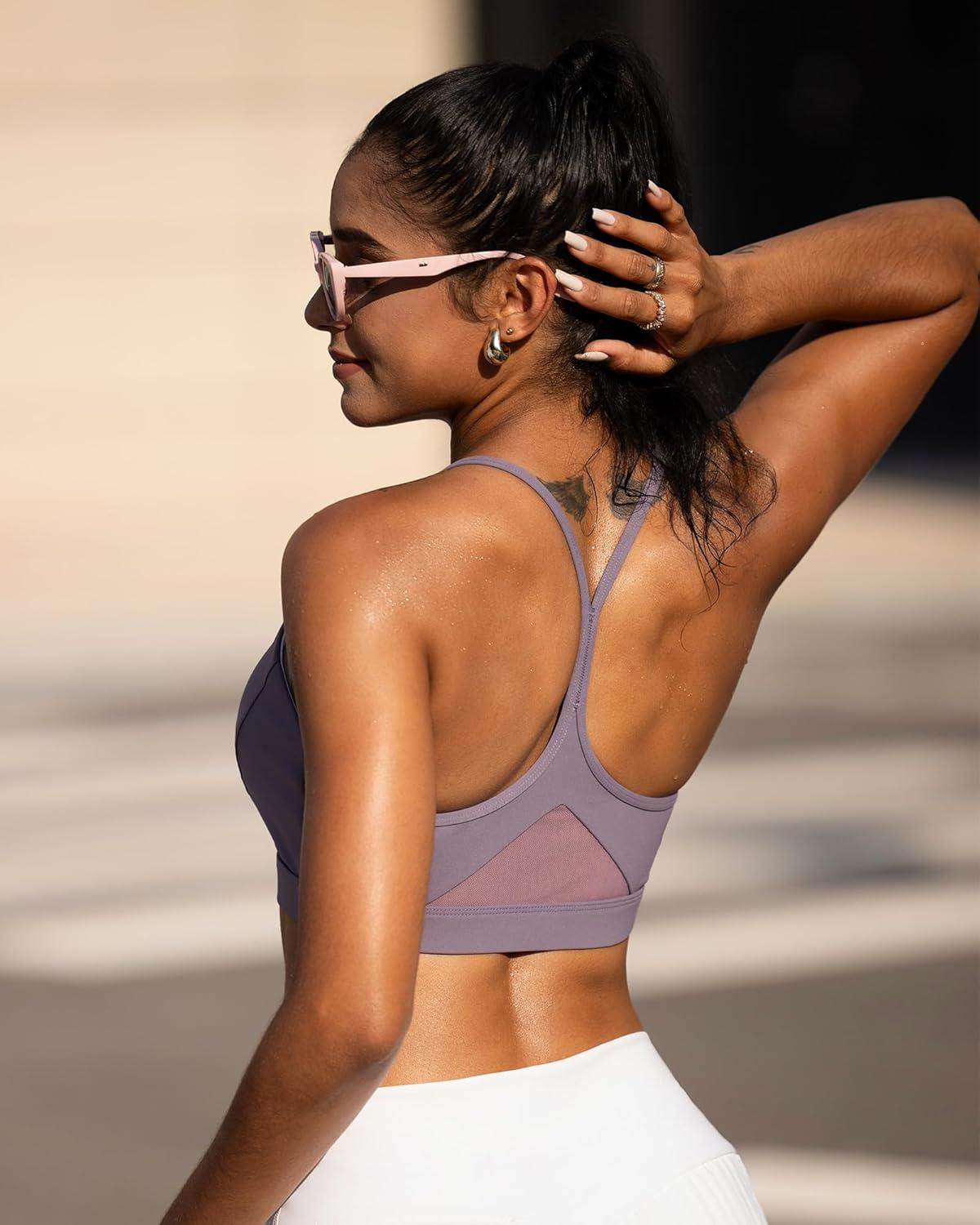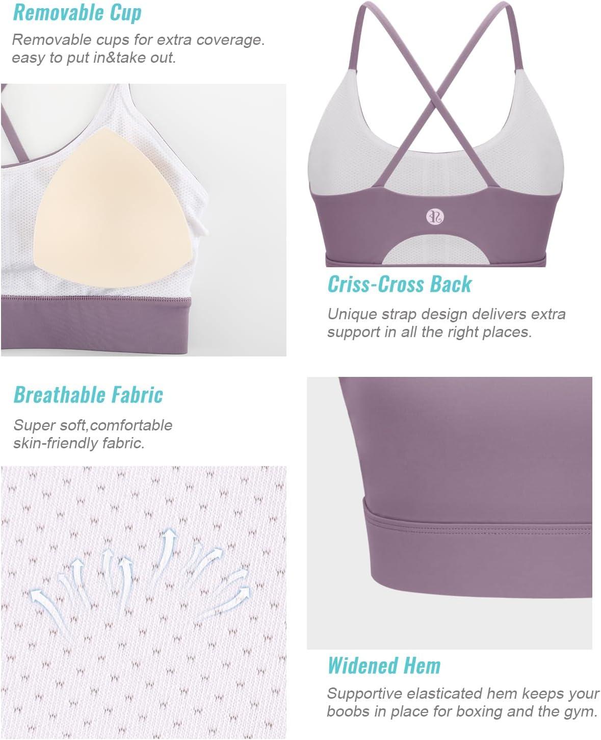 RUNNING GIRL Y-Back Sports Bras for Women, Medium Impact Wirefree Padded Bra Workout Crop Top Longline Sports Bra Push up(E-purple)