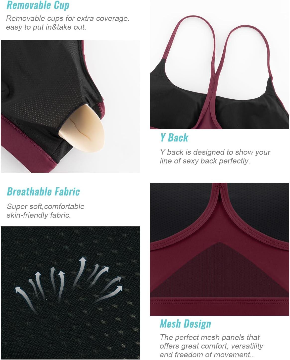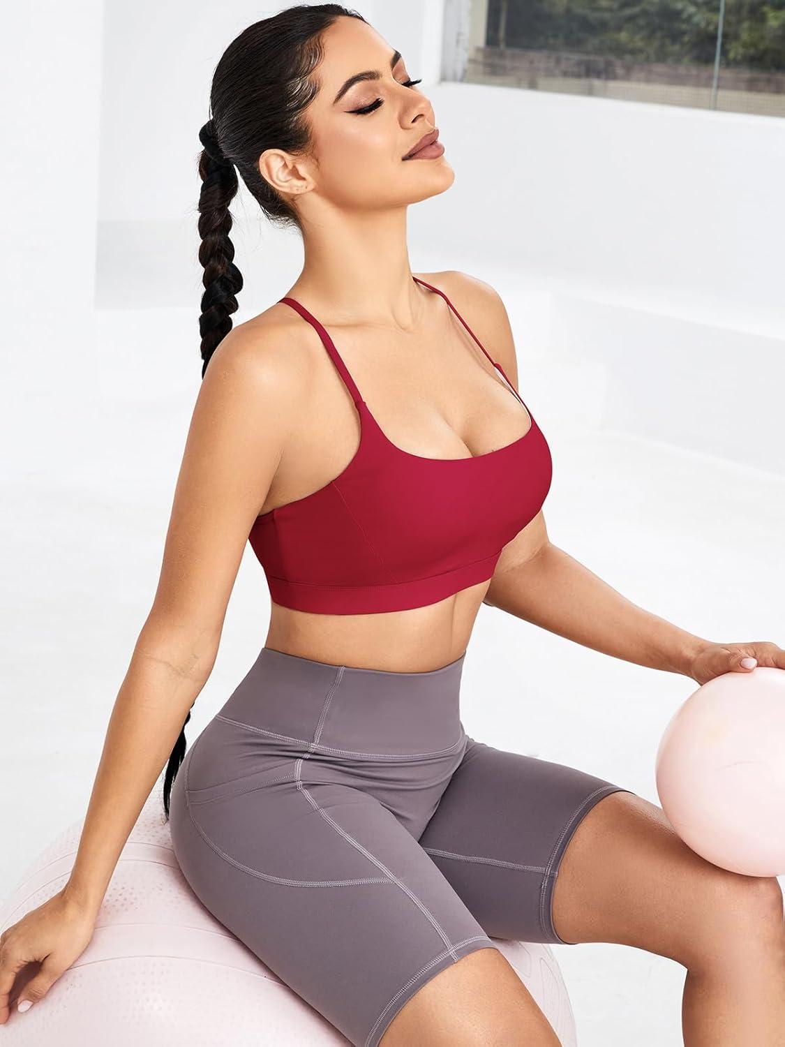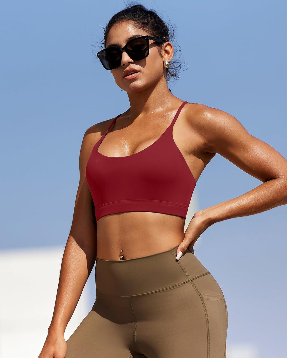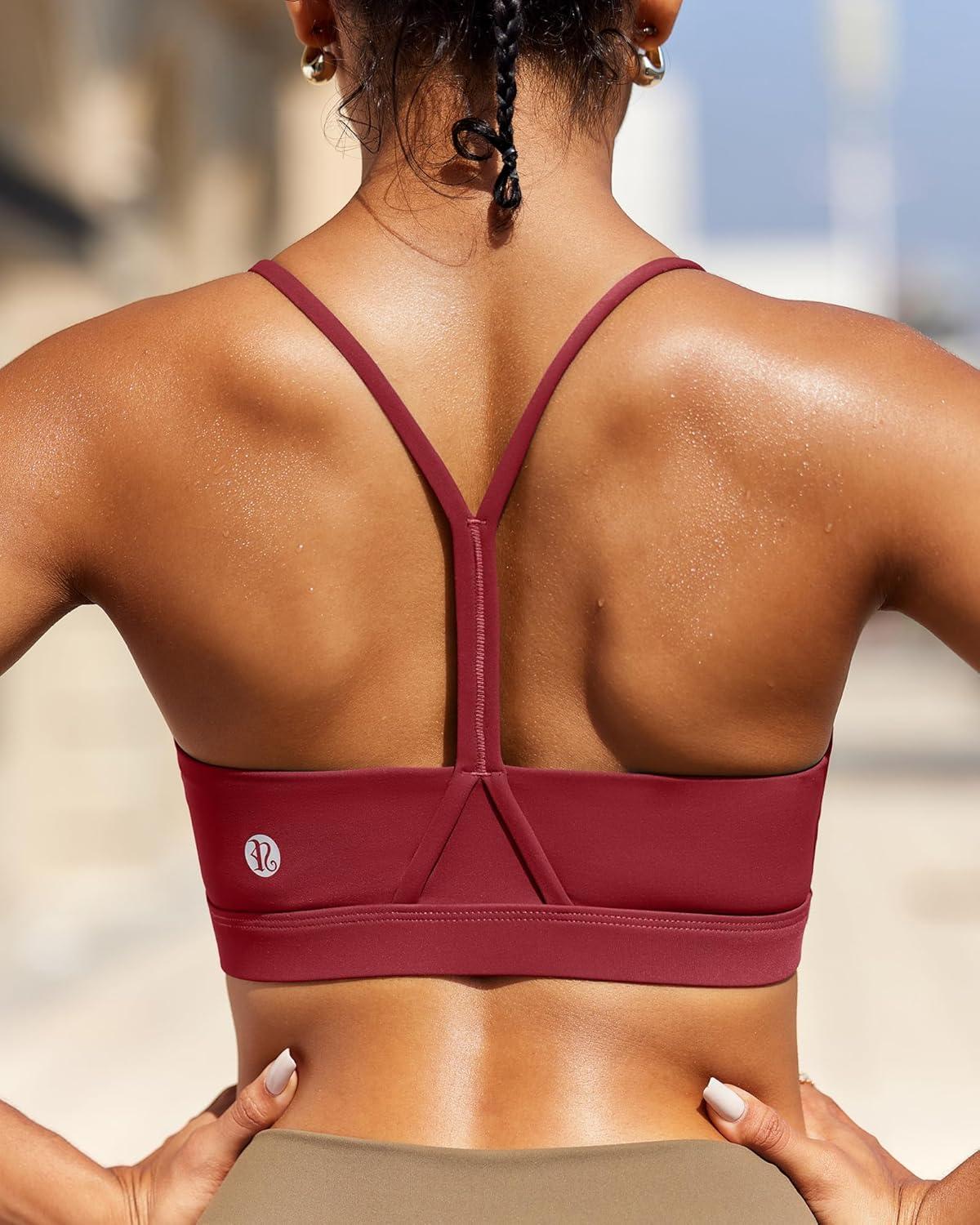 RUNNING GIRL Y-Back Sports Bras for Women, Medium Impact Wirefree Padded Bra Workout Crop Top Longline Sports Bra Push up(Winedred)