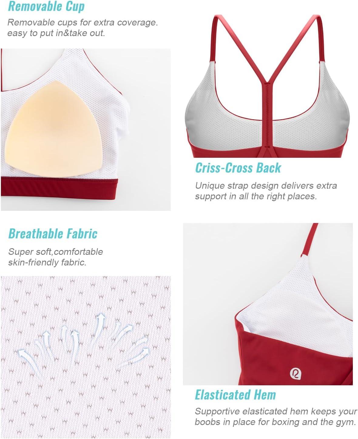 RUNNING GIRL Y-Back Sports Bras for Women, Medium Impact Wirefree Padded Bra Workout Crop Top Longline Sports Bra Push up(E-red)