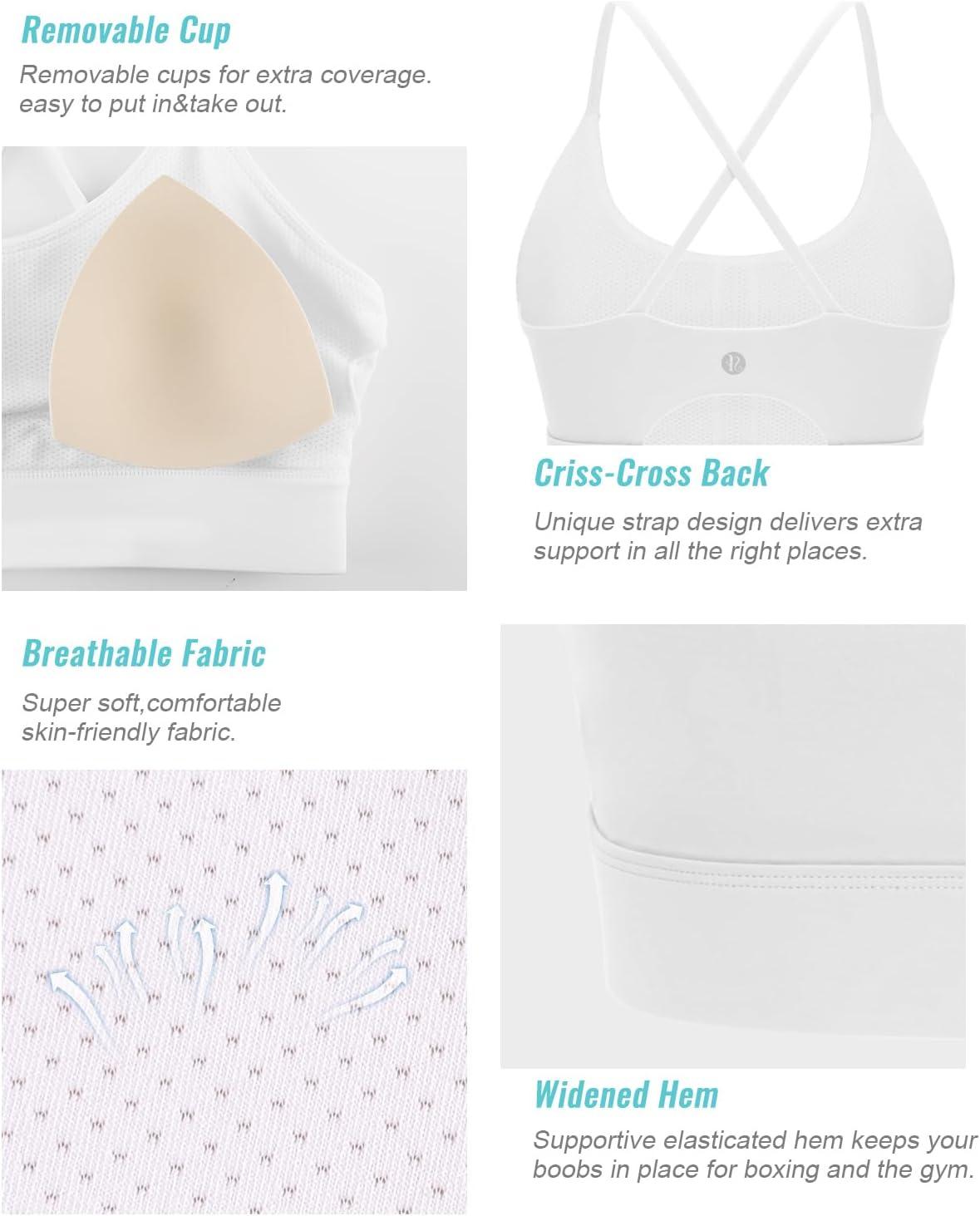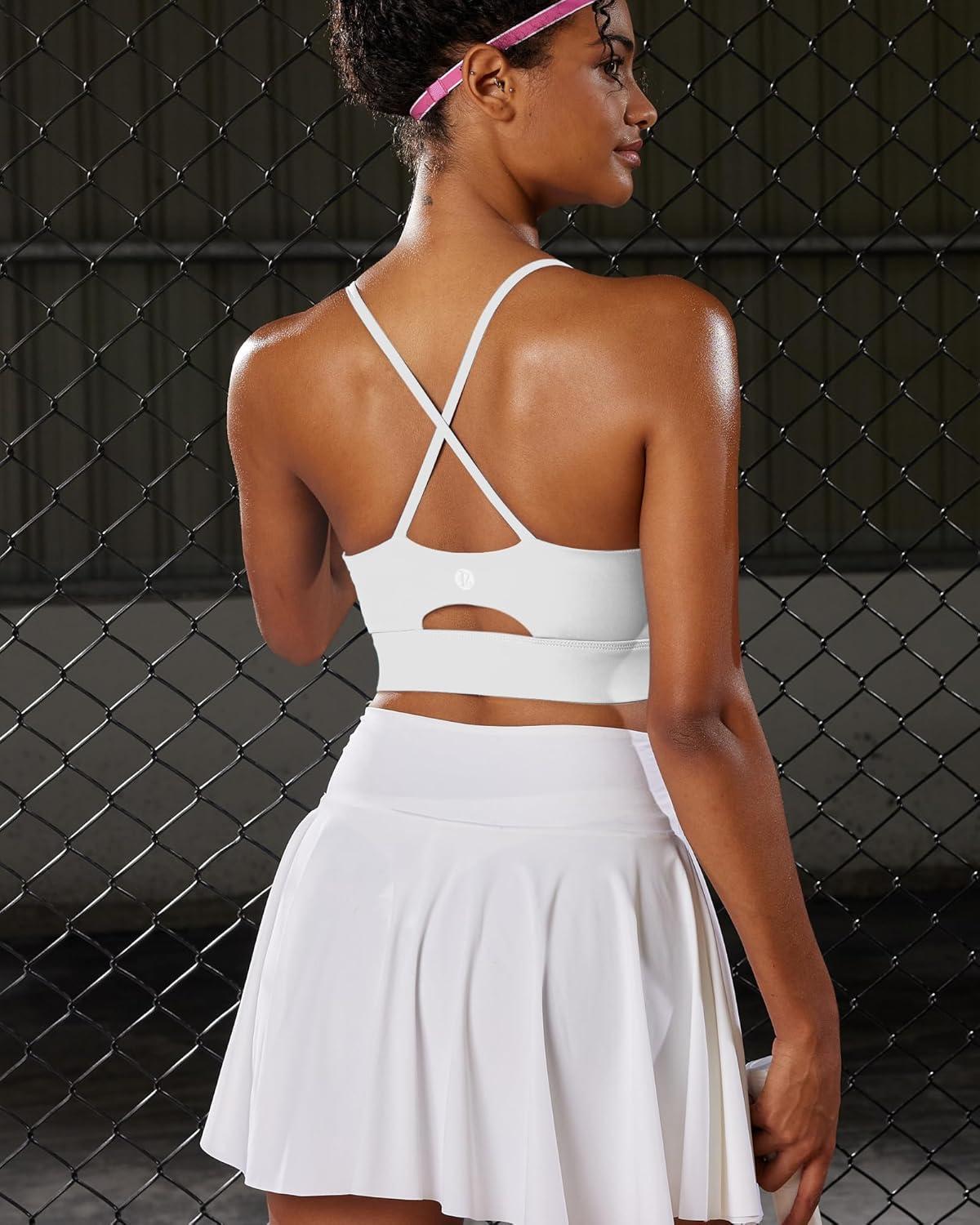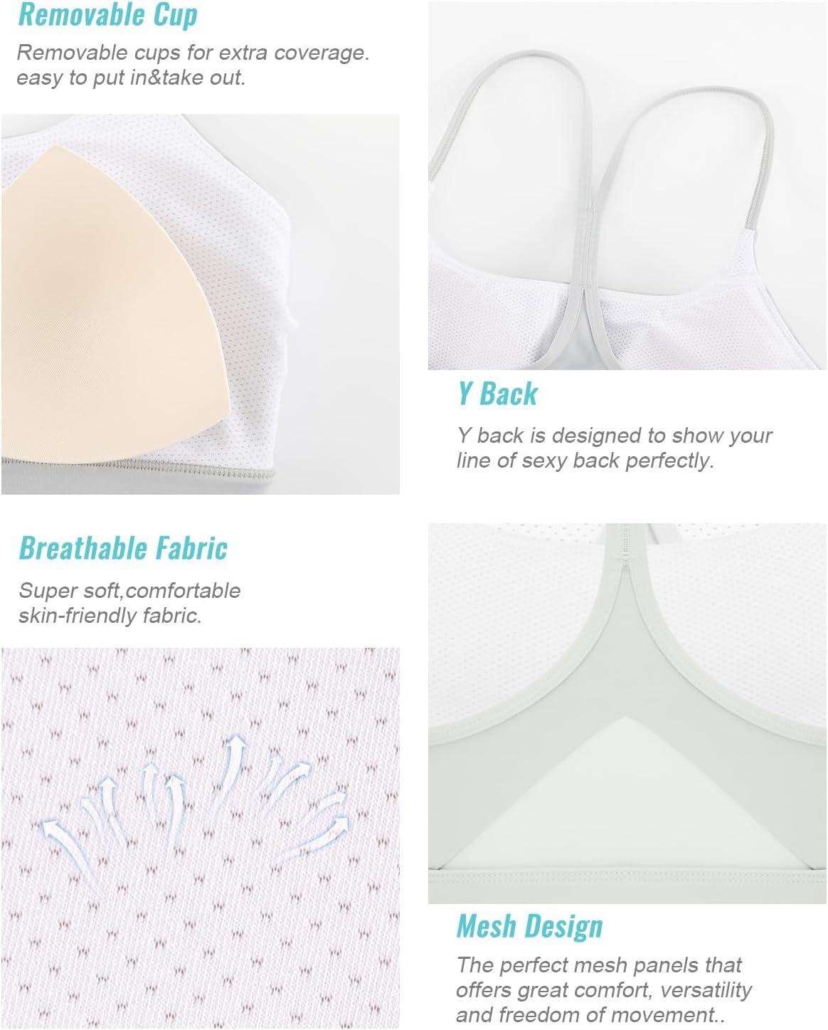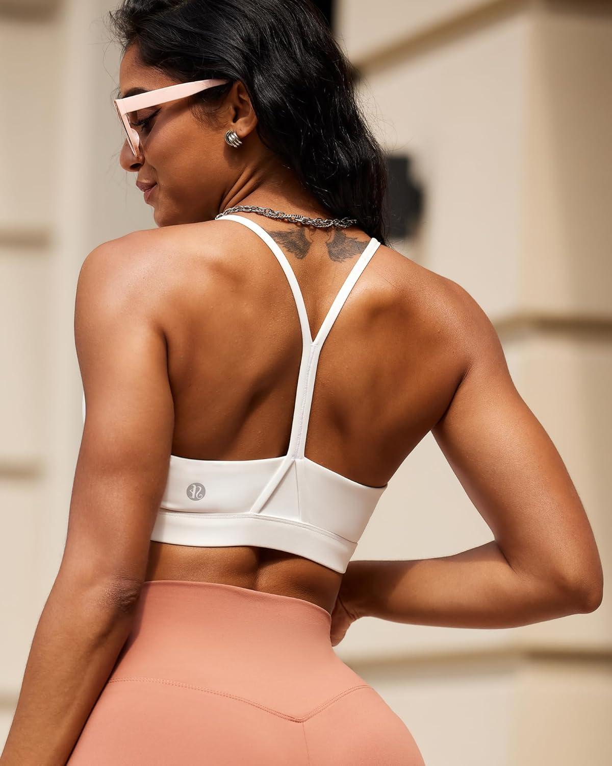RUNNING GIRL Y-Back Sports Bras for Women, Medium Impact Wirefree Padded Bra Workout Crop Top Longline Sports Bra Push up(E-white)