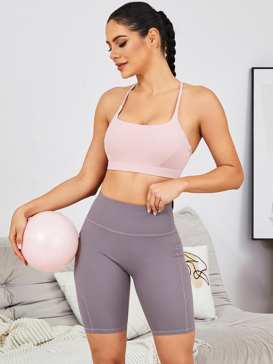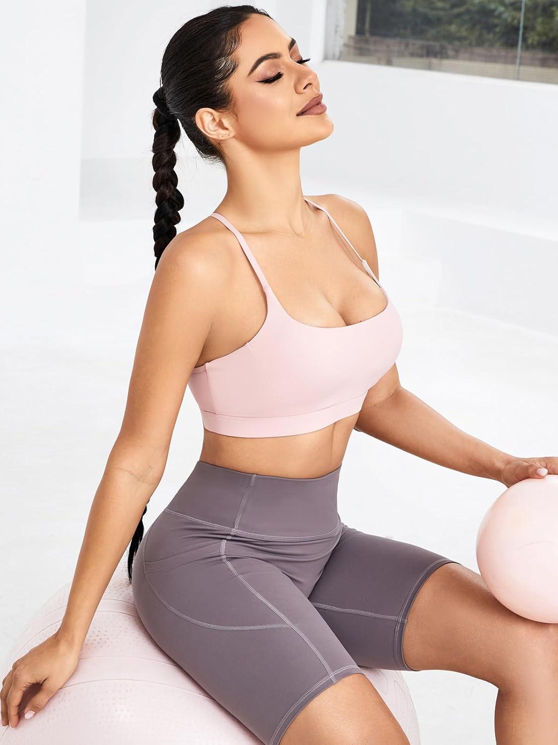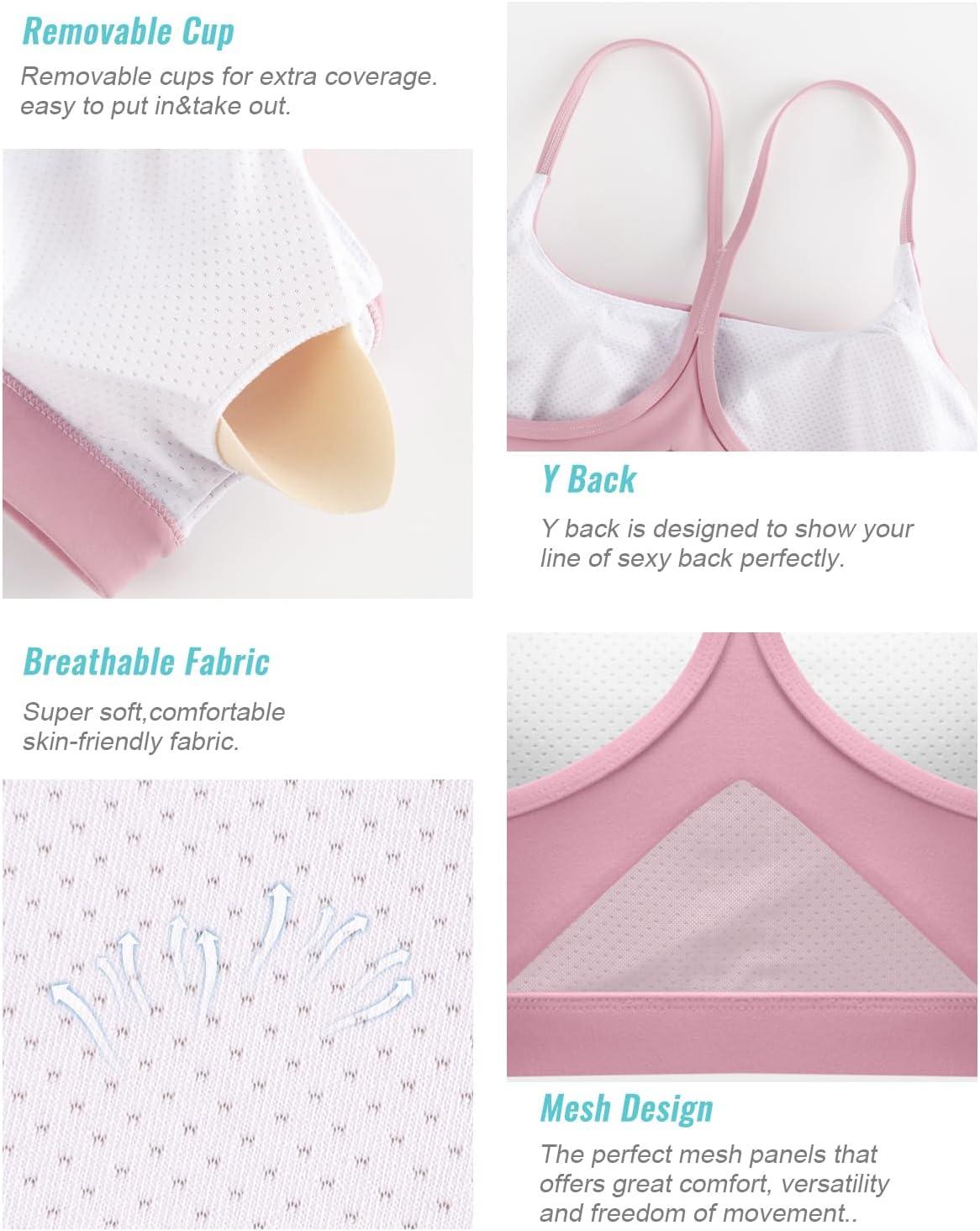 RUNNING GIRL Y-Back Sports Bras for Women, Medium Impact Wirefree Padded Bra Workout Crop Top Longline Sports Bra Push up(Flush Pink)