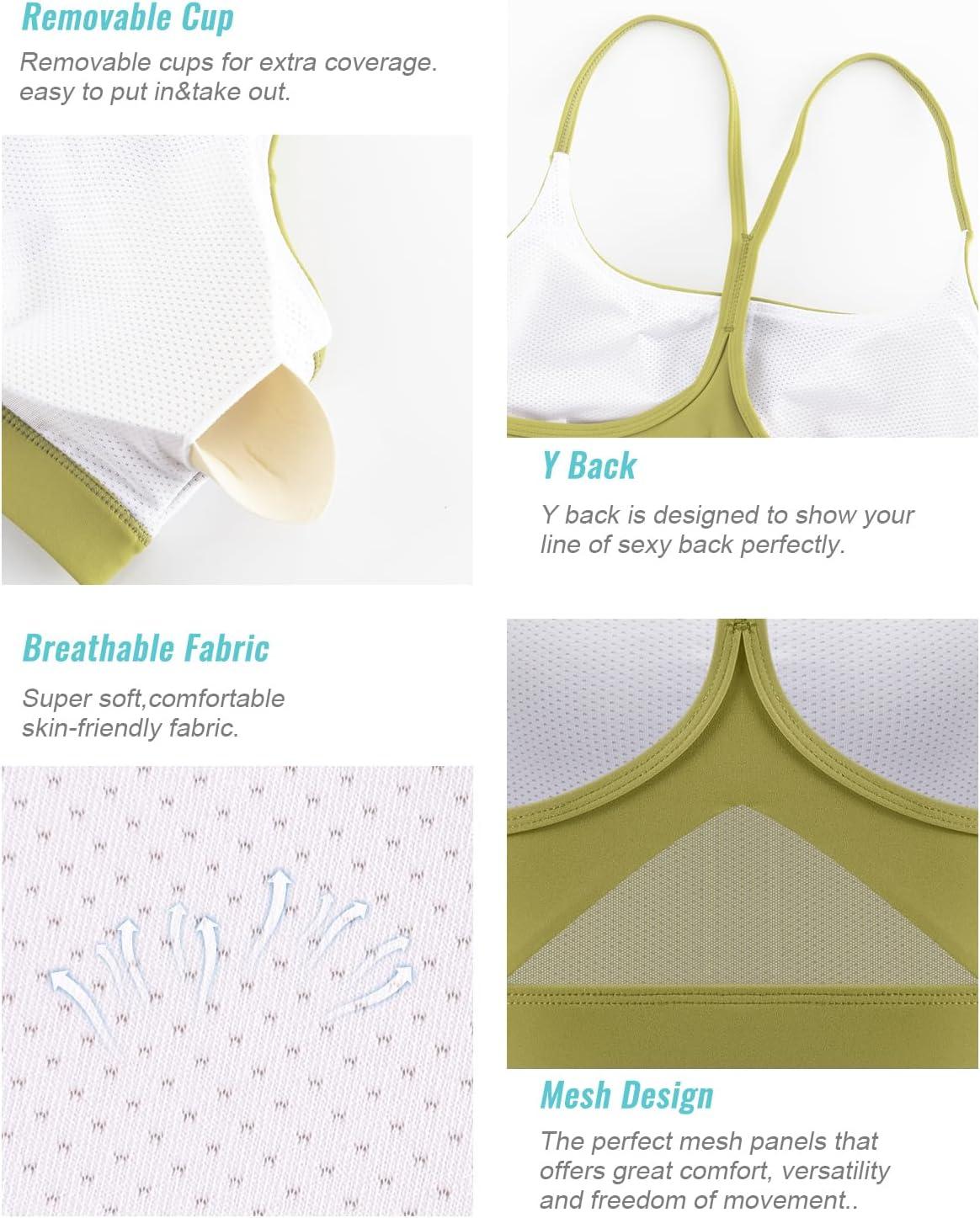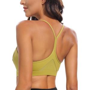 RUNNING GIRL Y-Back Sports Bras for Women, Medium Impact Wirefree Padded Bra Workout Crop Top Longline Sports Bra Push up(Golden Olive)