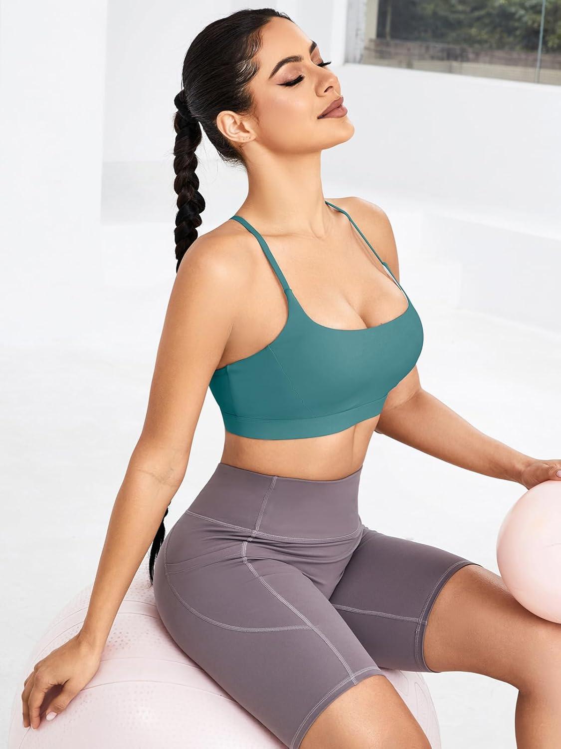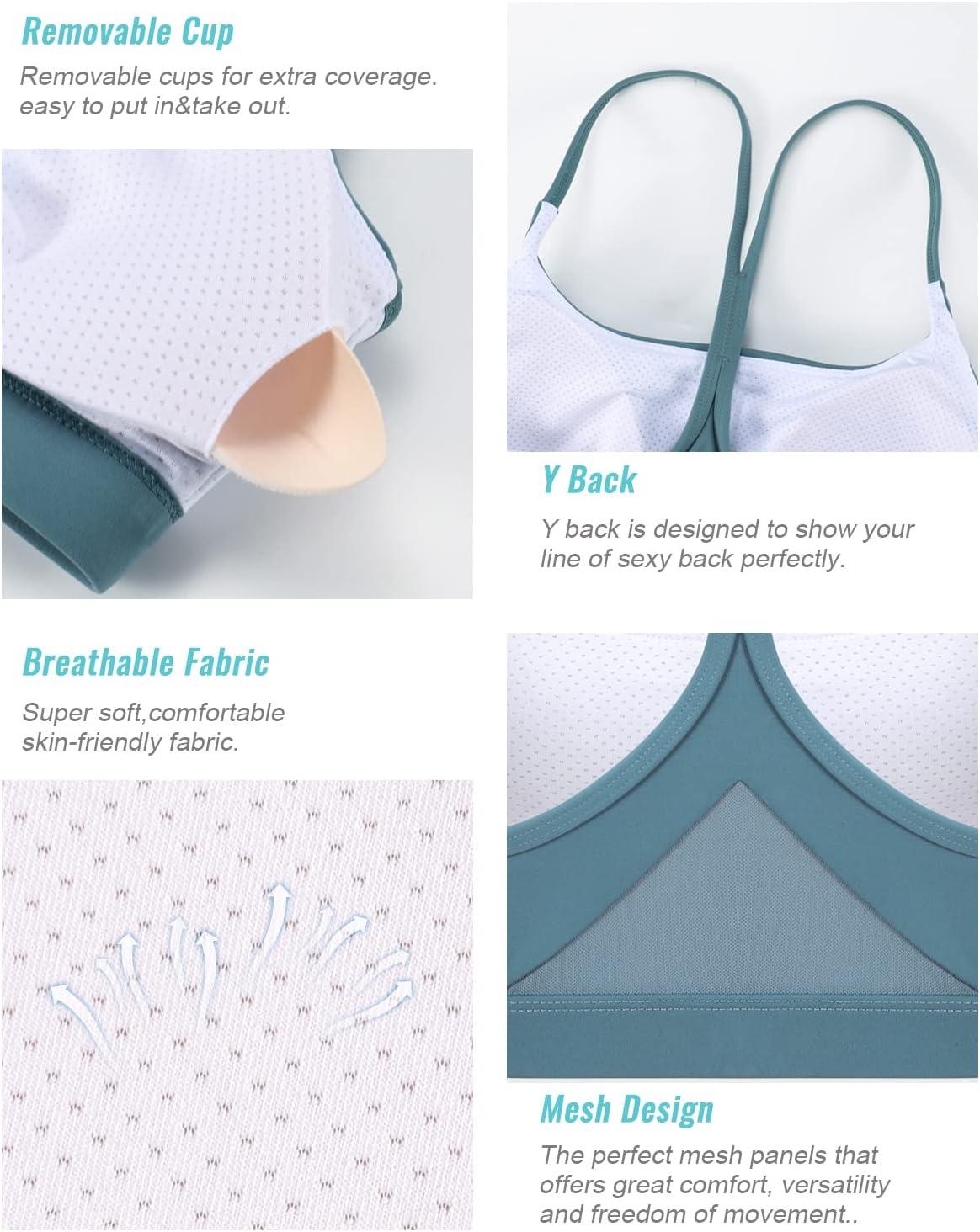 RUNNING GIRL Y-Back Sports Bras for Women, Medium Impact Wirefree Padded Bra Workout Crop Top Longline Sports Bra Push up(E-storm Teal)