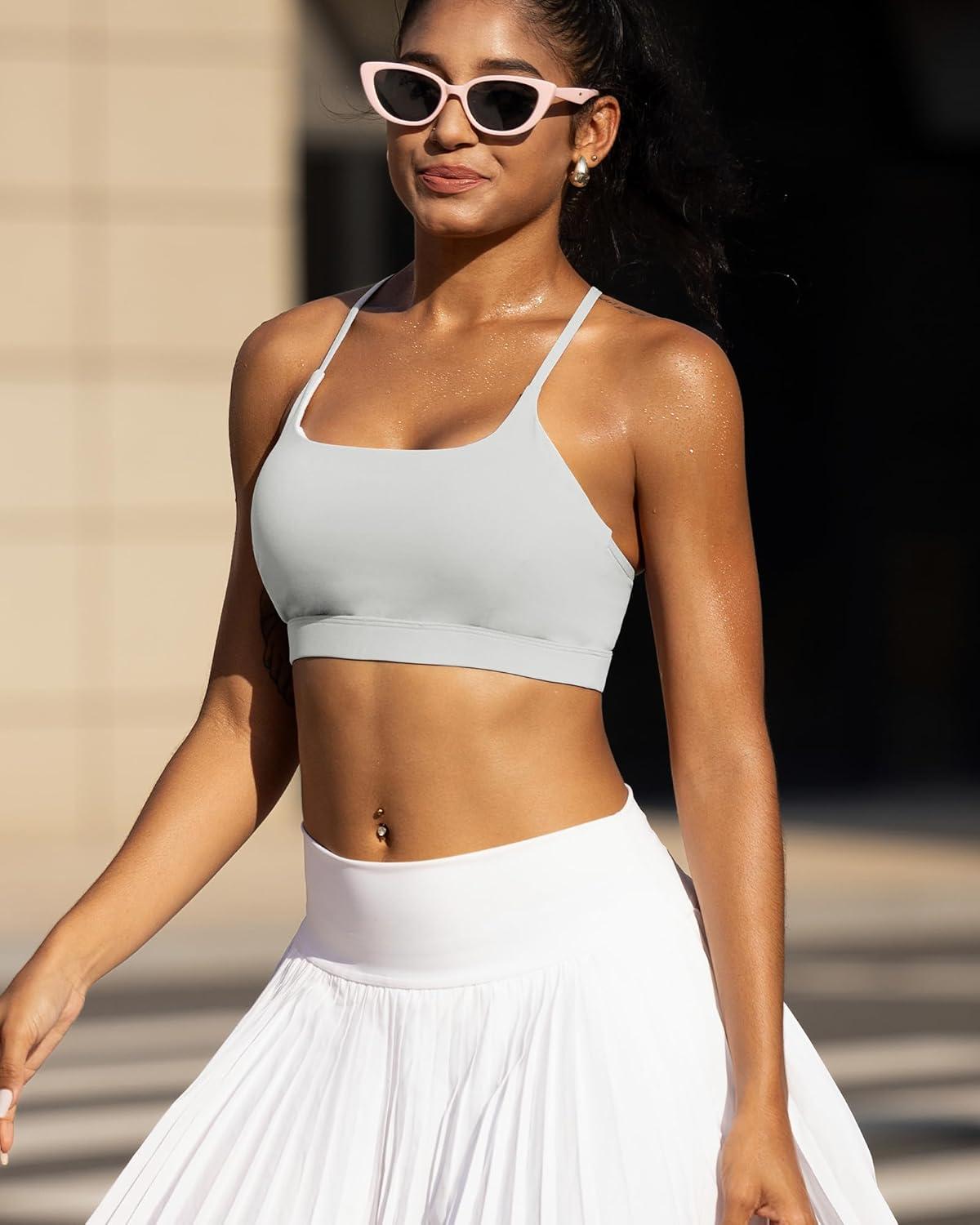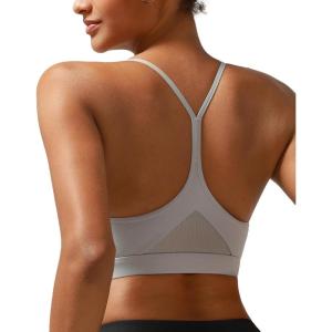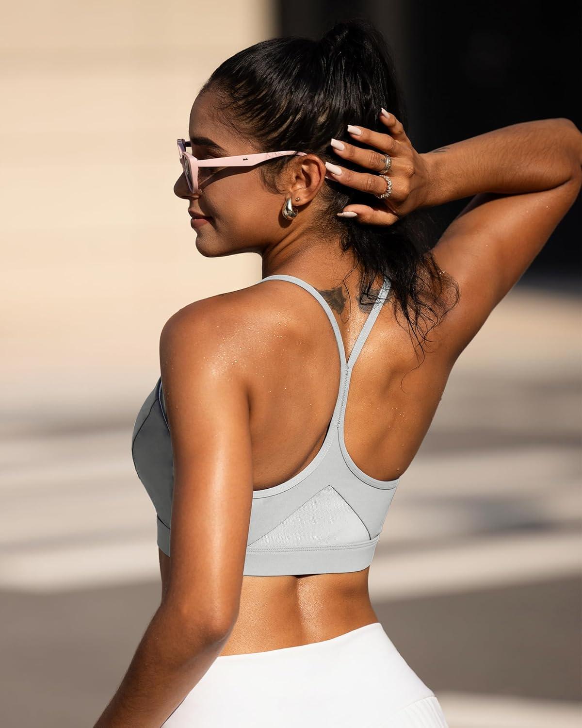RUNNING GIRL Y-Back Sports Bras for Women, Medium Impact Wirefree Padded Bra Workout Crop Top Longline Sports Bra Push up(Icy Grey)