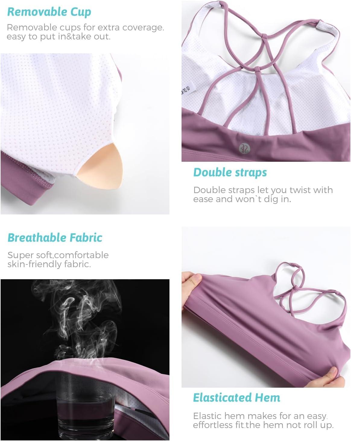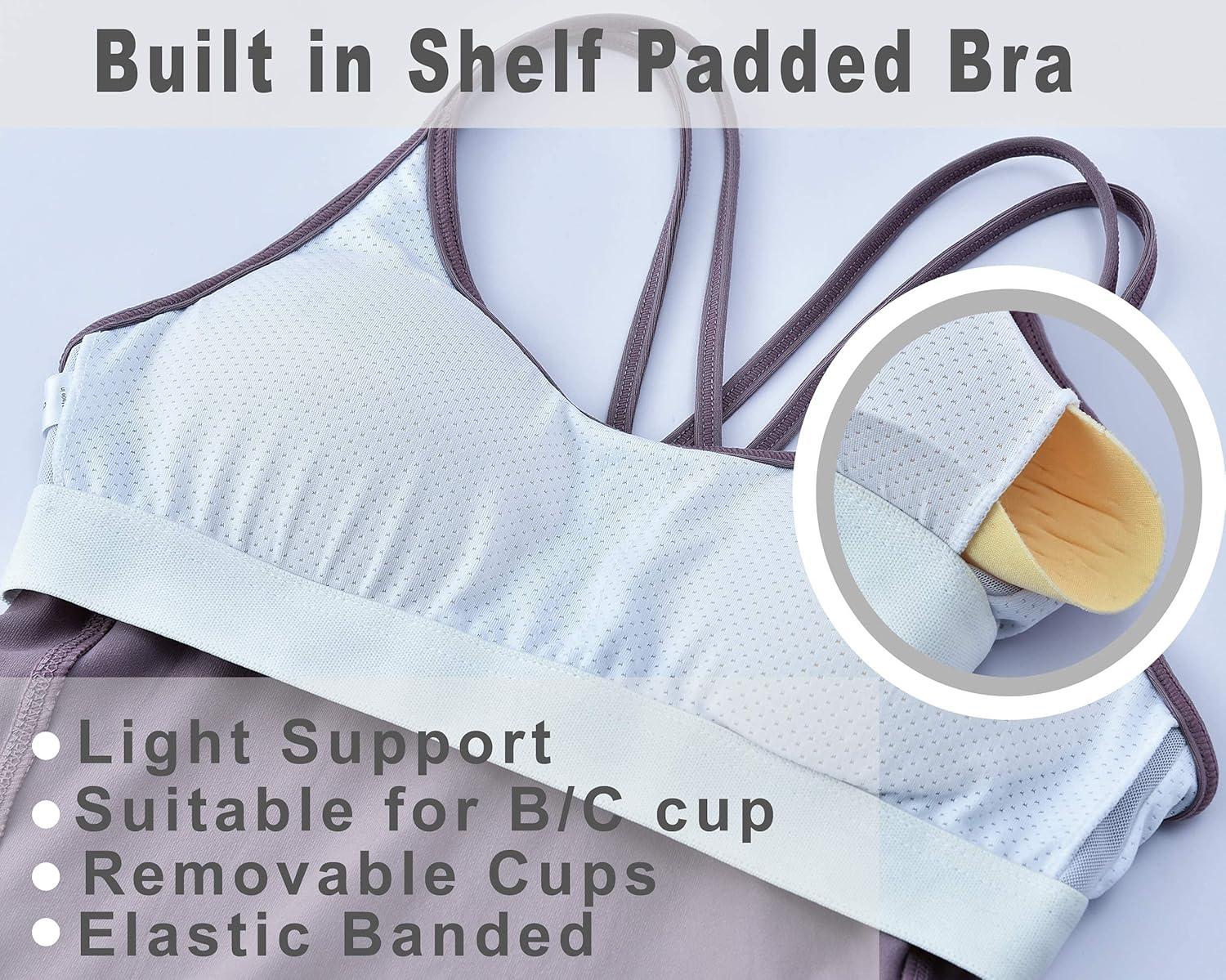 RUNNING GIRL Yoga Tank Tops for Women Built in Shelf Bra B/C Cups Strappy Back Activewear Workout Compression Tops(C-purple)