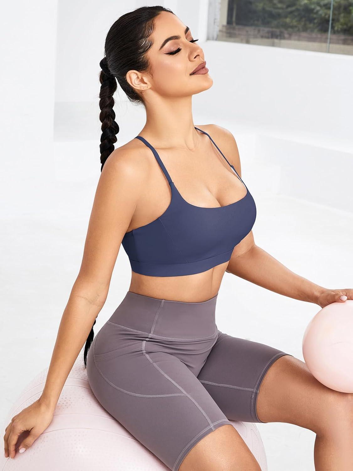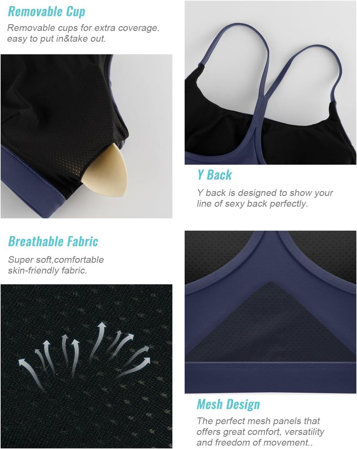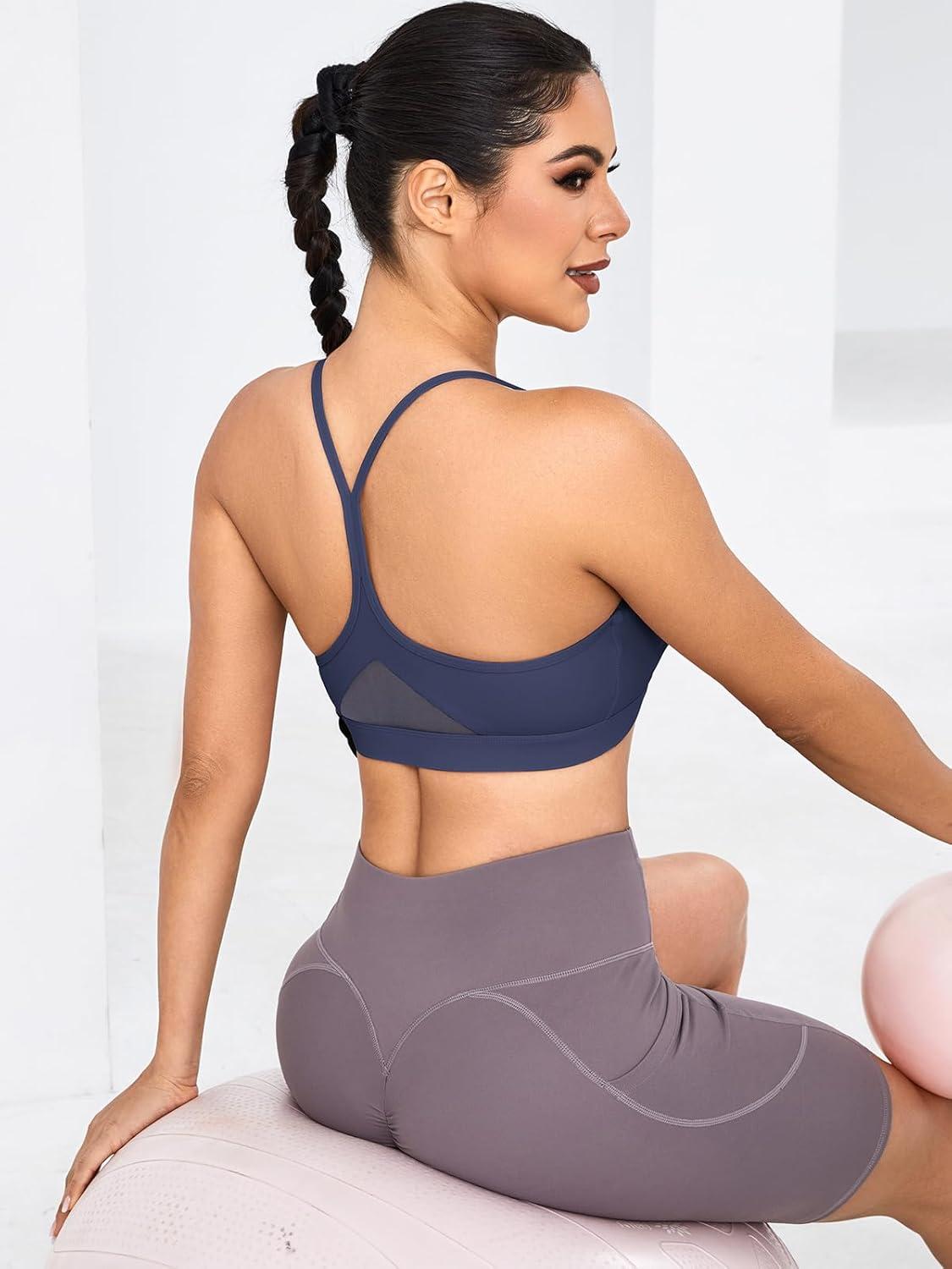RUNNING GIRL Y-Back Sports Bras for Women, Medium Impact Wirefree Padded Bra Workout Crop Top Longline Sports Bra Push up(Navy Blue)