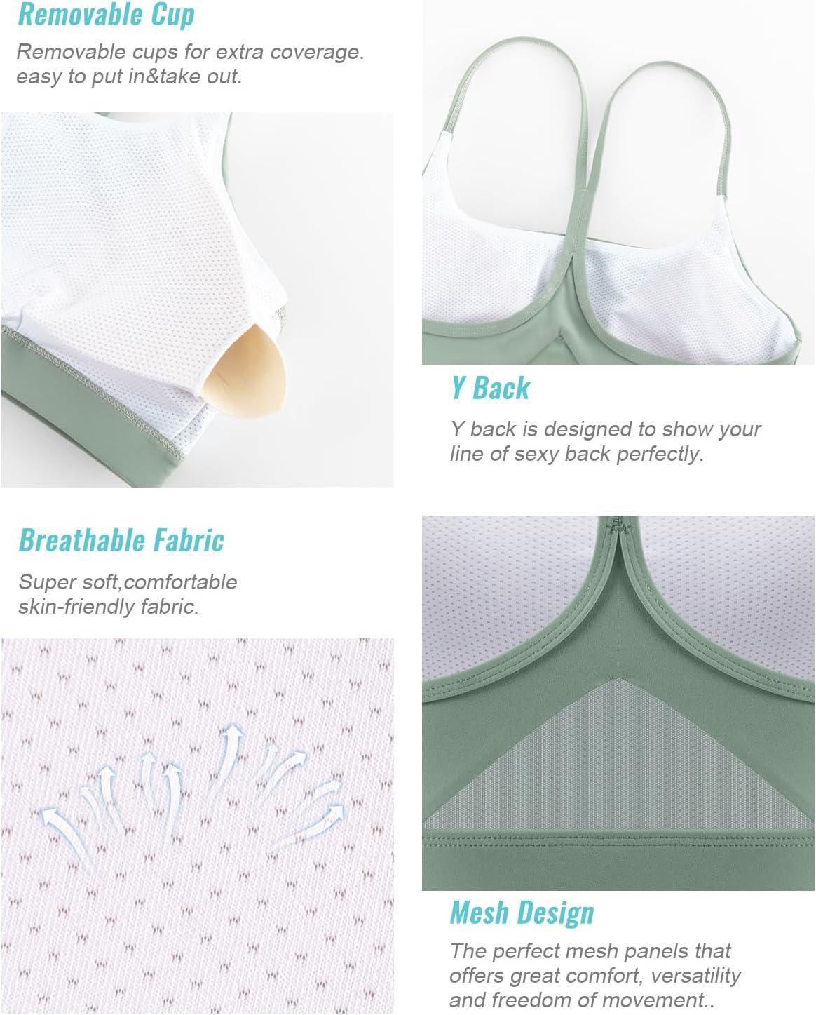 RUNNING GIRL Y-Back Sports Bras for Women, Medium Impact Wirefree Padded Bra Workout Crop Top Longline Sports Bra Push up(Green)