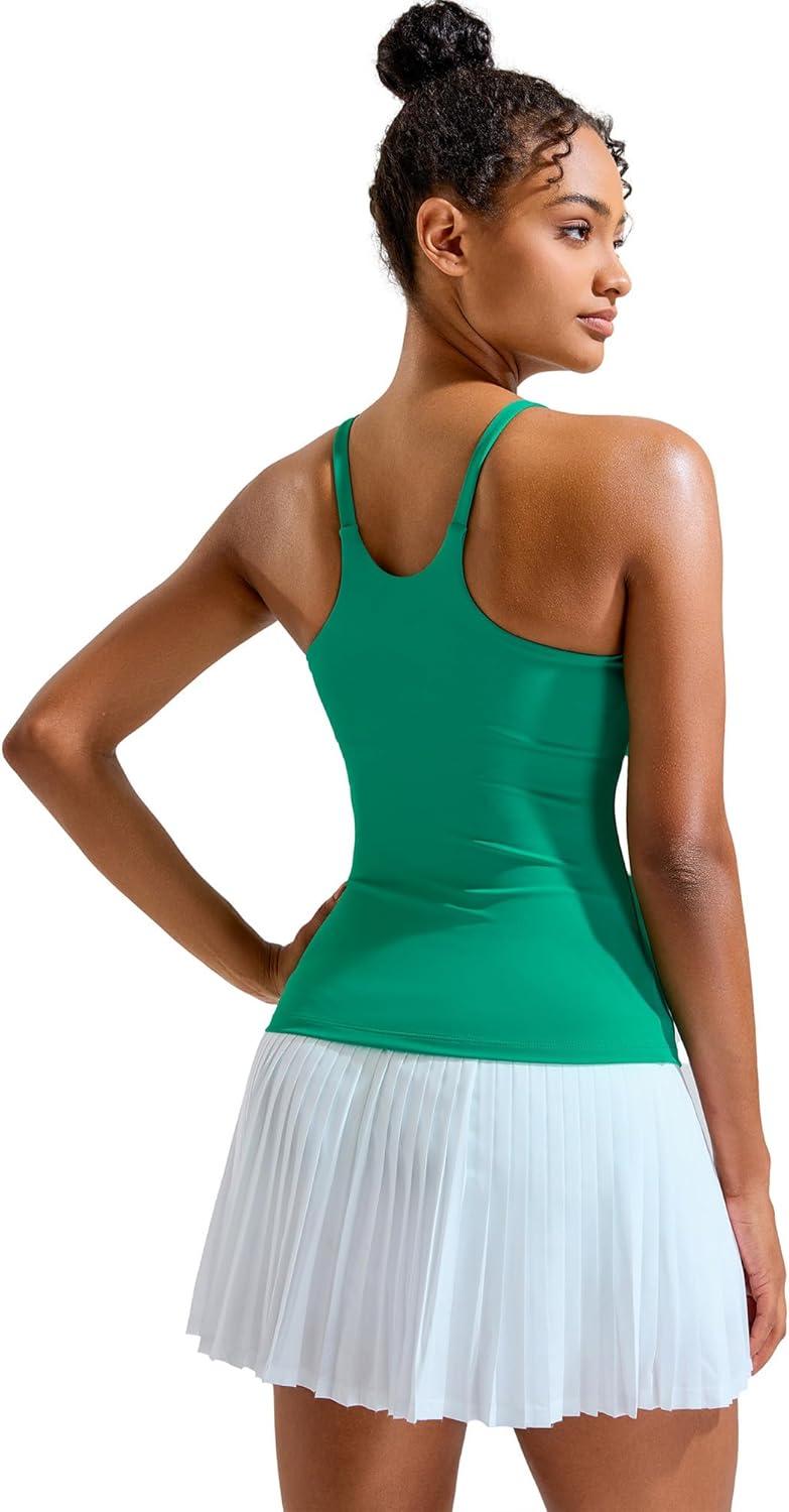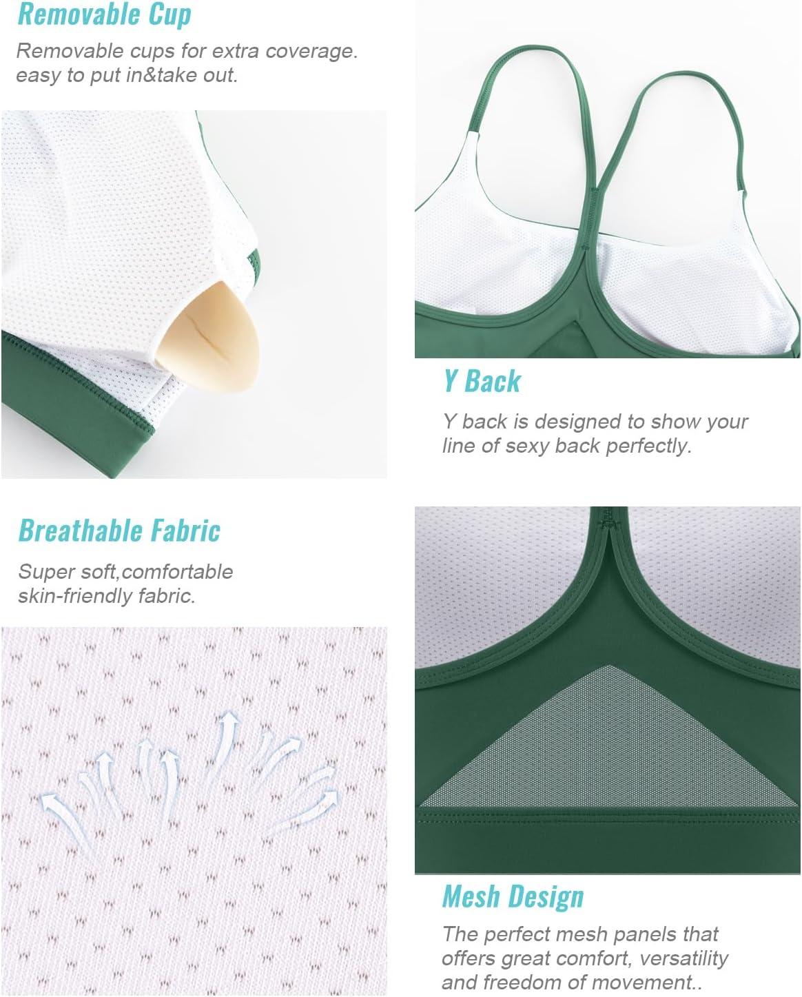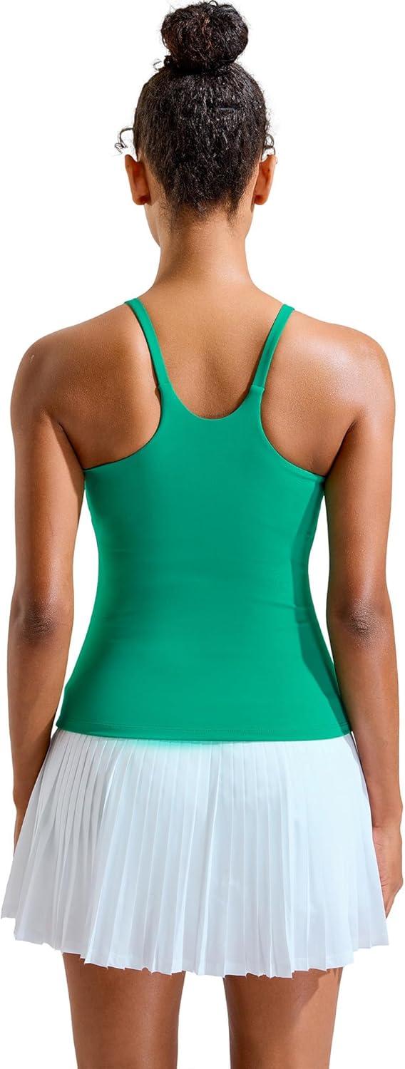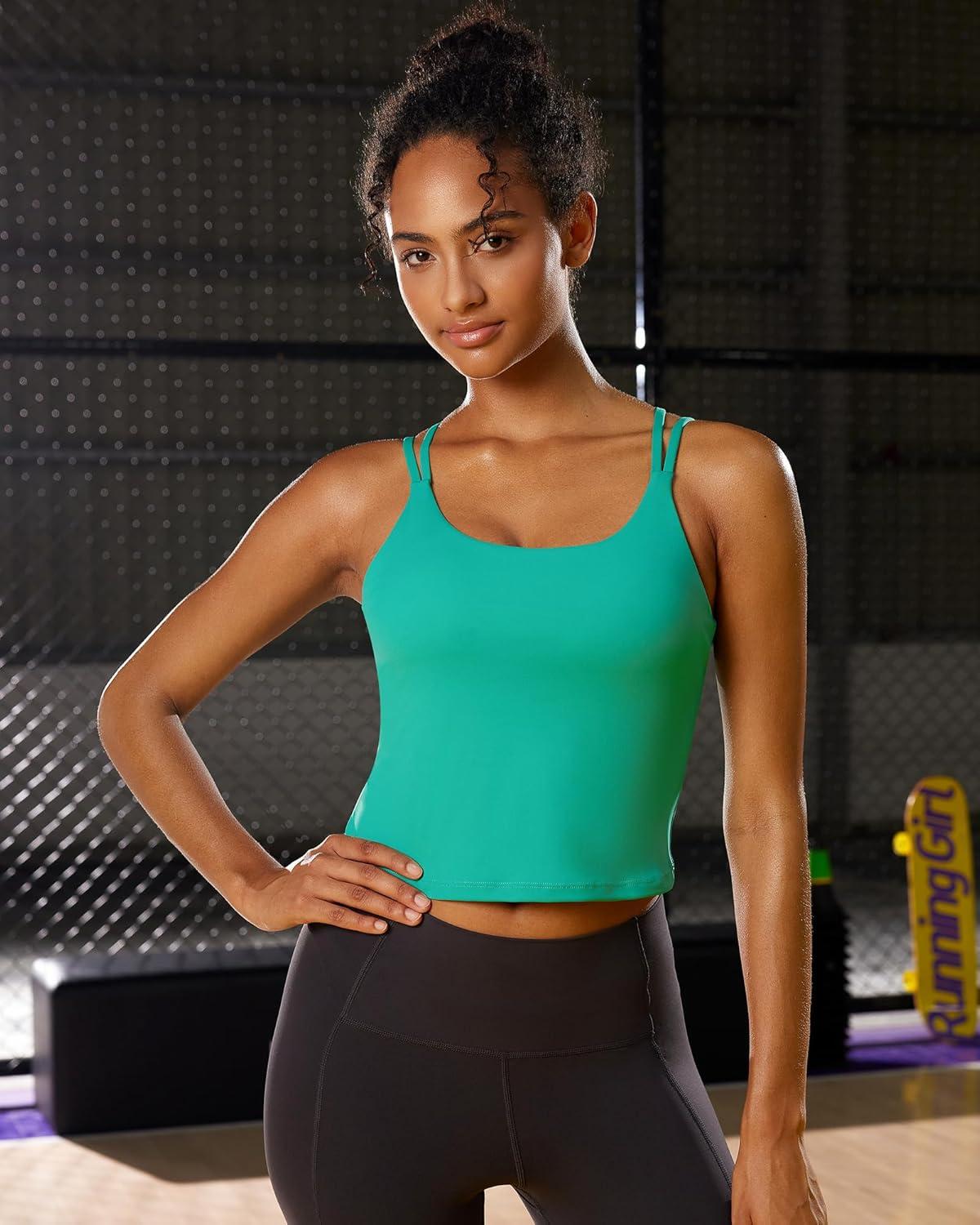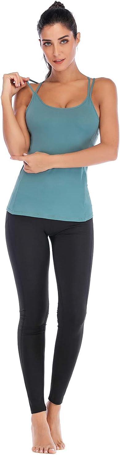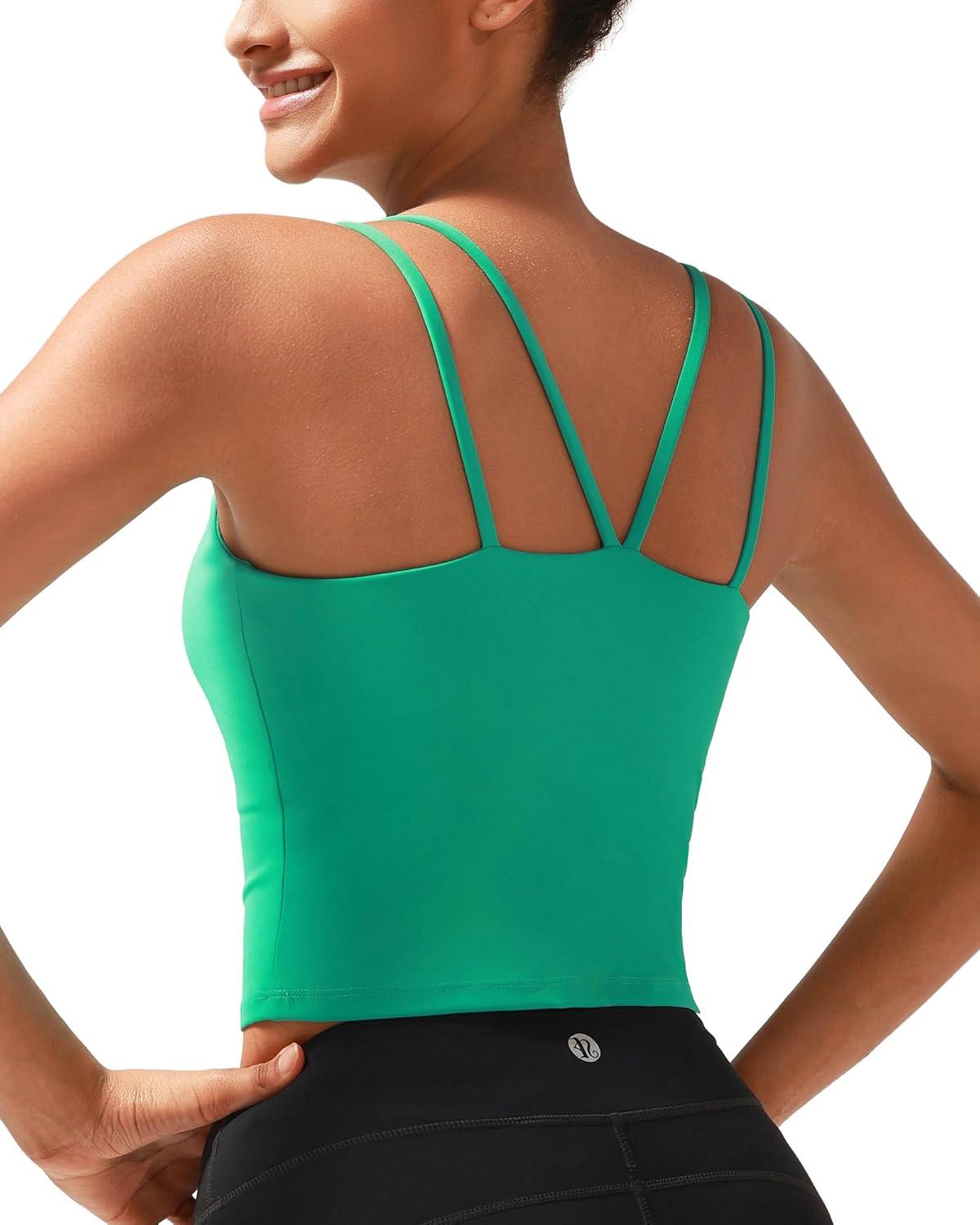 RUNNING GIRL Yoga Tank Tops for Women Built in Shelf Bra B/C Cups Strappy Back Activewear Workout Compression Tops(Z-green)