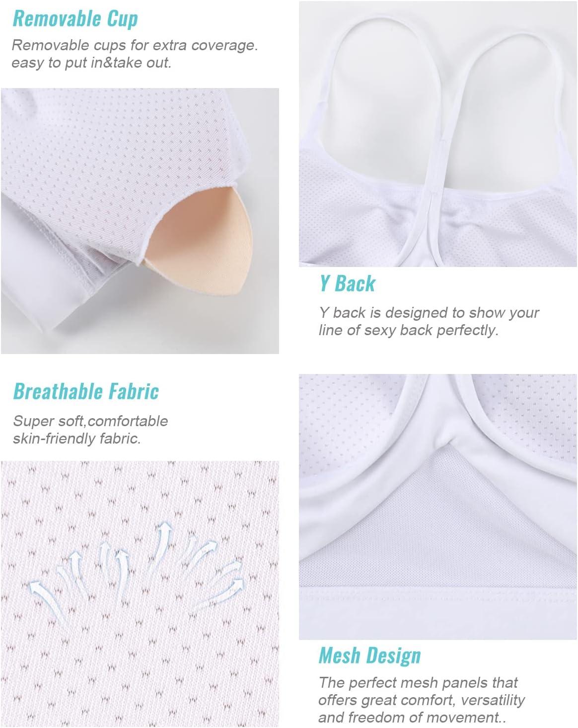 RUNNING GIRL Yoga Tank Tops for Women Built in Shelf Bra B/C Cups Strappy Back Activewear Workout Compression Tops(W-white)