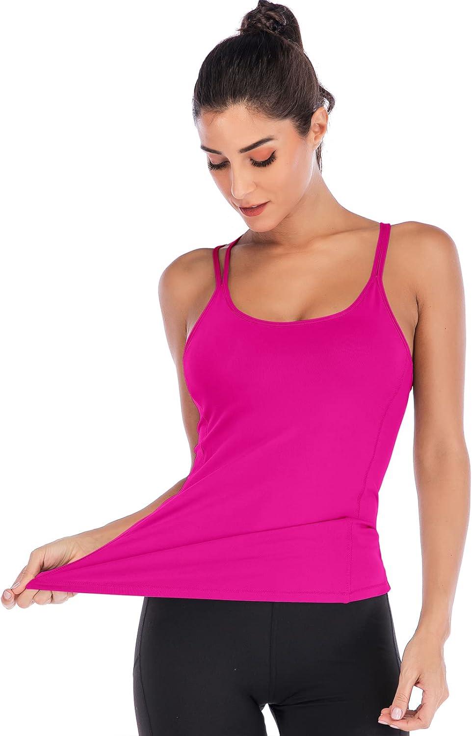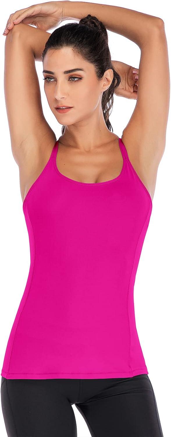 RUNNING GIRL Yoga Tank Tops for Women Built in Shelf Bra B/C Cups Strappy Back Activewear Workout Compression Tops(D-hot Pink)