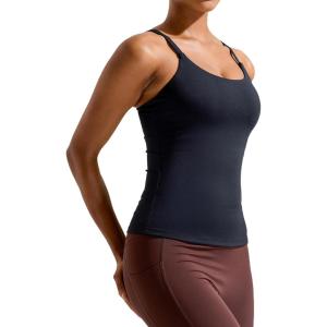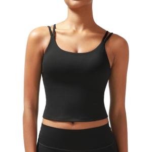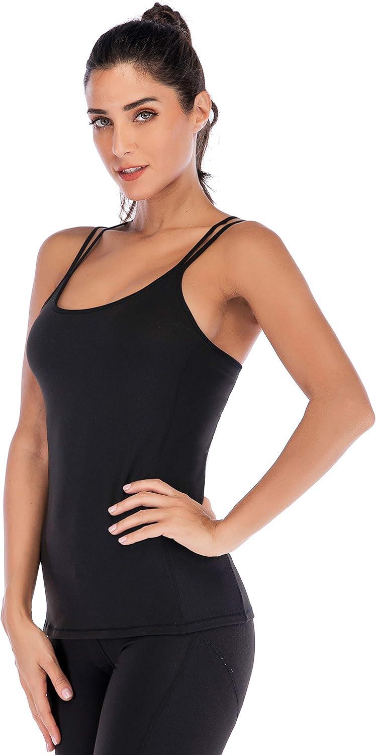 RUNNING GIRL Yoga Tank Tops for Women Built in Shelf Bra B/C Cups Strappy Back Activewear Workout Compression Tops(W-black)