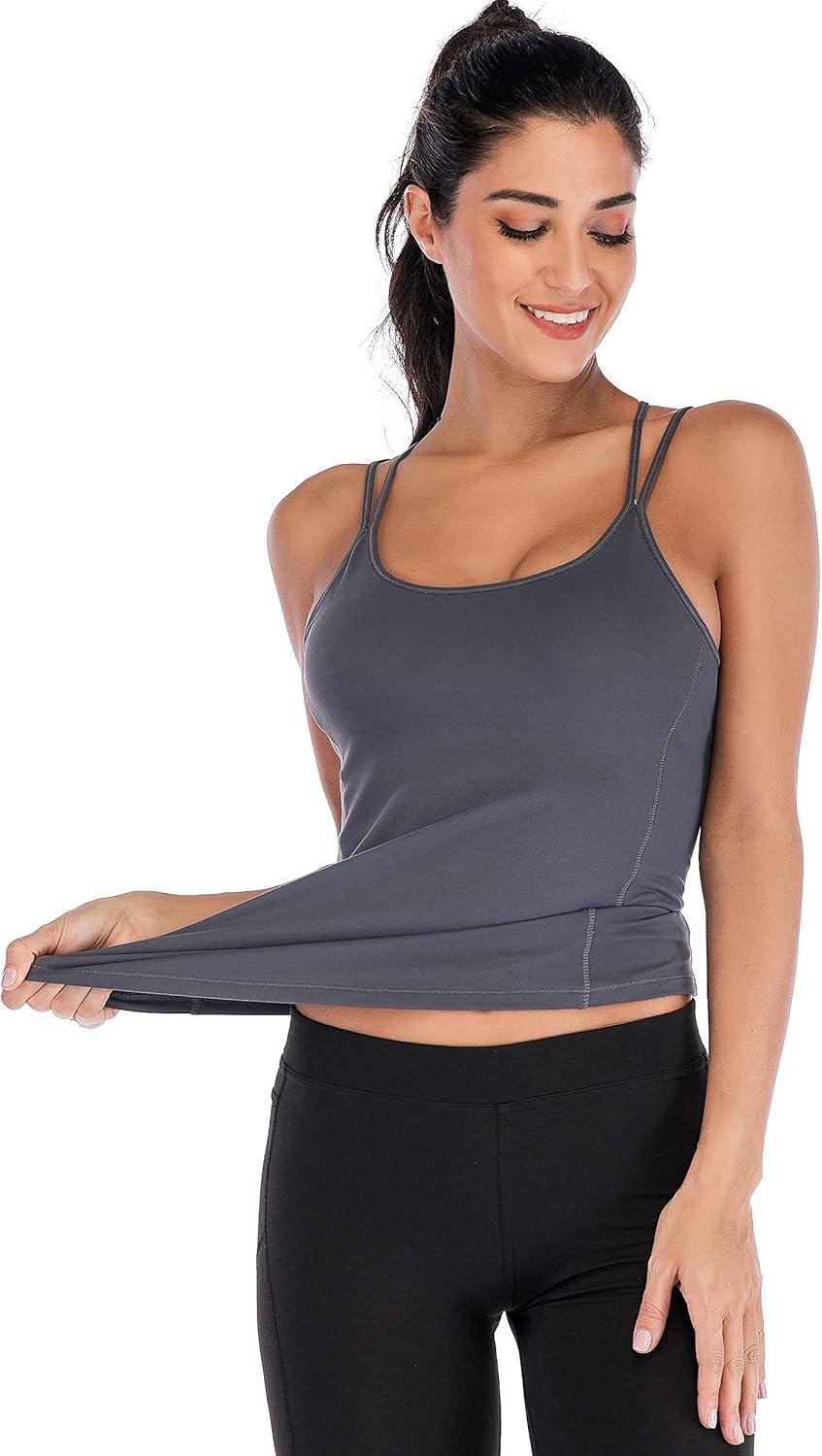 RUNNING GIRL Yoga Tank Tops for Women Built in Shelf Bra B/C Cups Strappy Back Activewear Workout Compression Tops(D-grey)