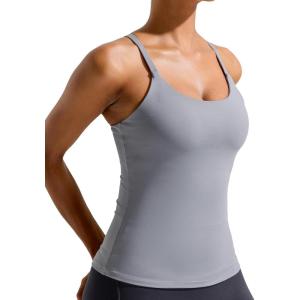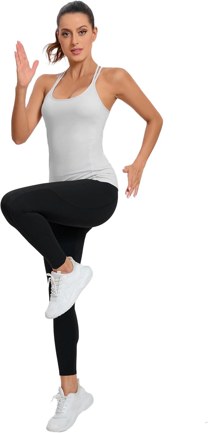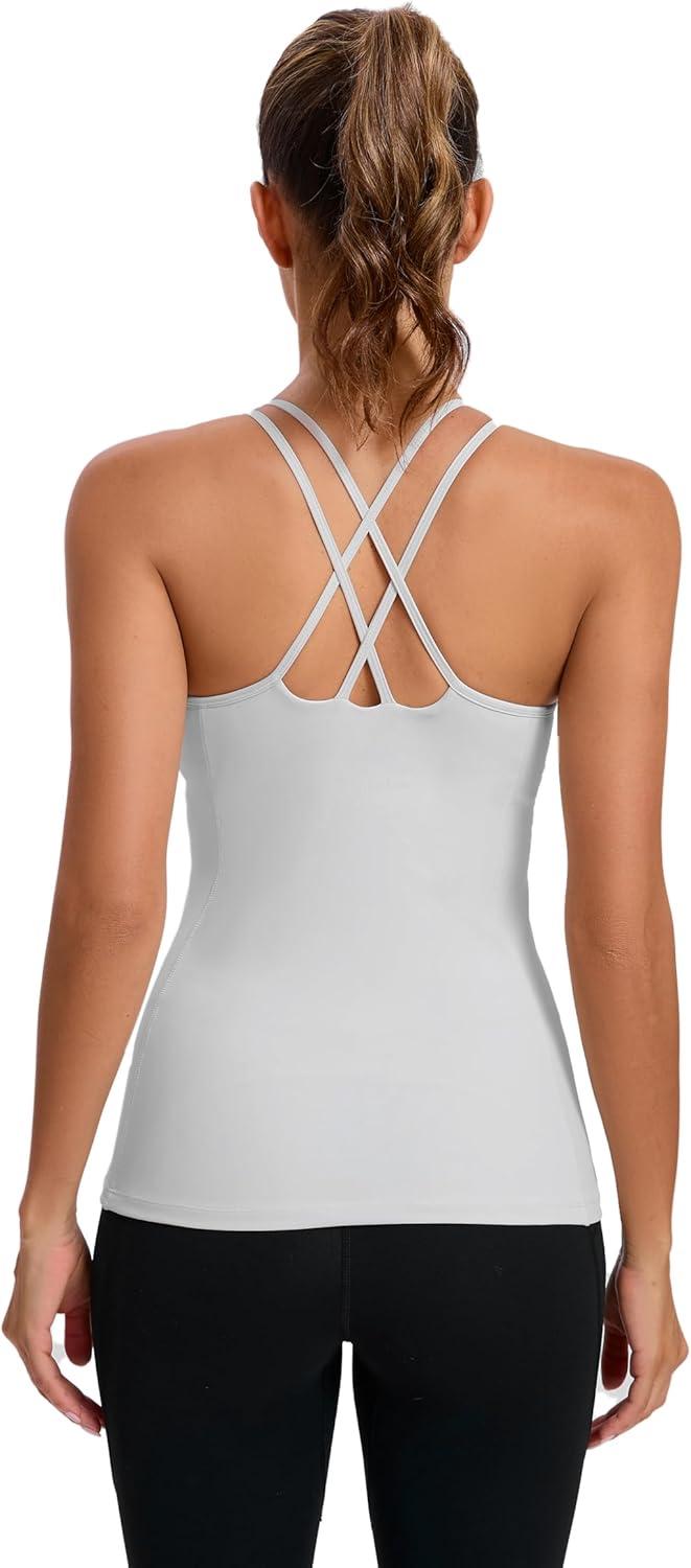 RUNNING GIRL Yoga Tank Tops for Women Built in Shelf Bra B/C Cups Strappy Back Activewear Workout Compression Tops(C-ice Grey)