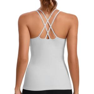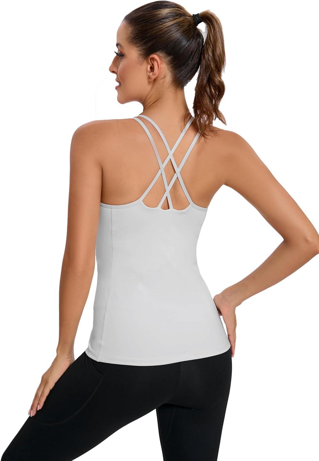 RUNNING GIRL Yoga Tank Tops for Women Built in Shelf Bra B/C Cups Strappy Back Activewear Workout Compression Tops(Z-grey)
