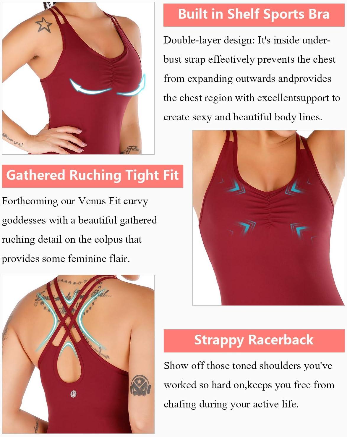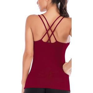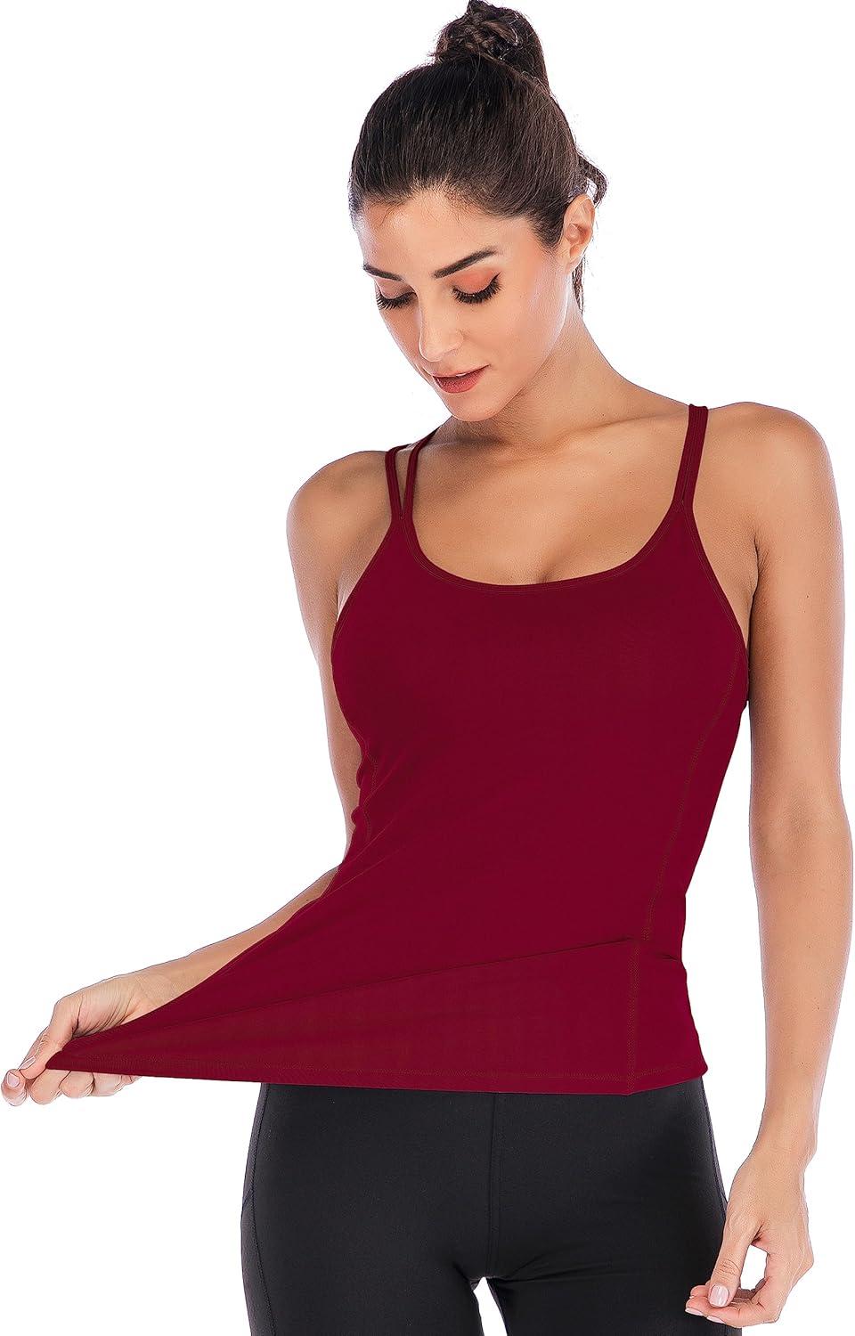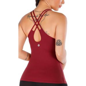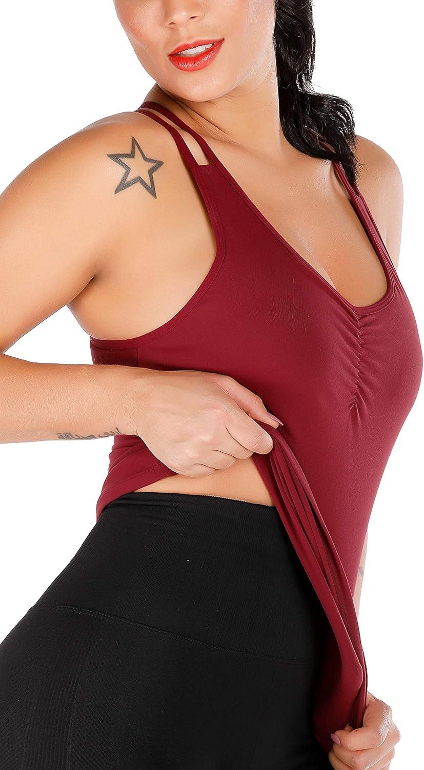 RUNNING GIRL Yoga Tank Tops for Women Built in Shelf Bra B/C Cups Strappy Back Activewear Workout Compression Tops(D-red)