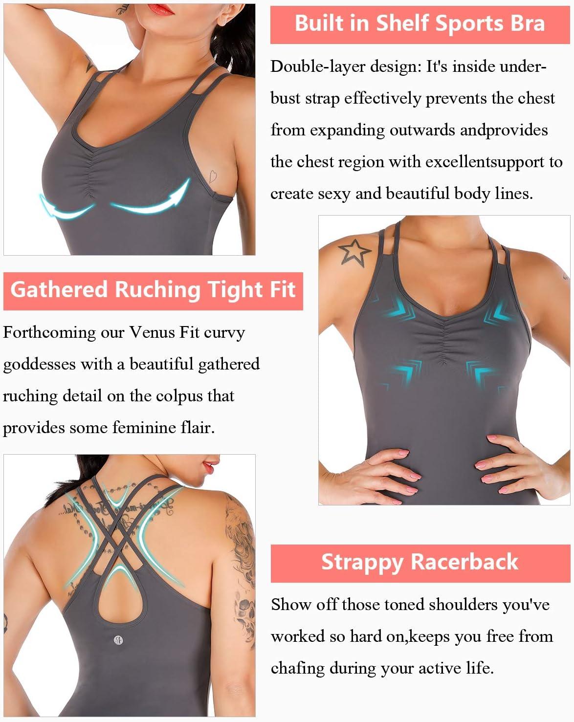 RUNNING GIRL Yoga Tank Tops for Women Built in Shelf Bra B/C Cups Strappy Back Activewear Workout Compression Tops(W-grey)