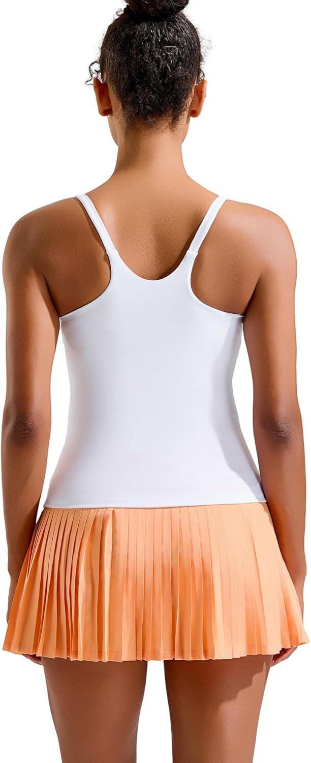 RUNNING GIRL Yoga Tank Tops for Women Built in Shelf Bra B/C Cups Strappy Back Activewear Workout Compression Tops(D-white)